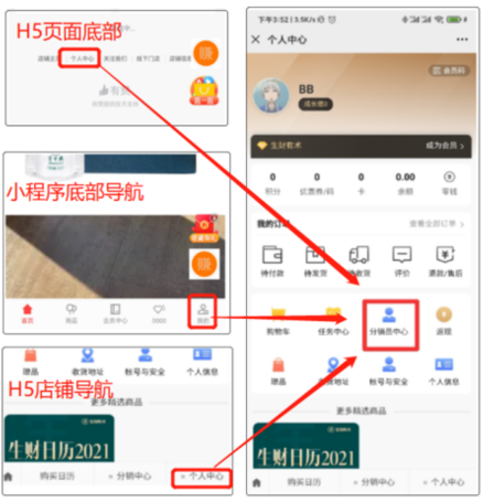 方法三:在店铺页面详情/商品详情,点击【赚】或【分享赚】小图标可以进入分销员中心