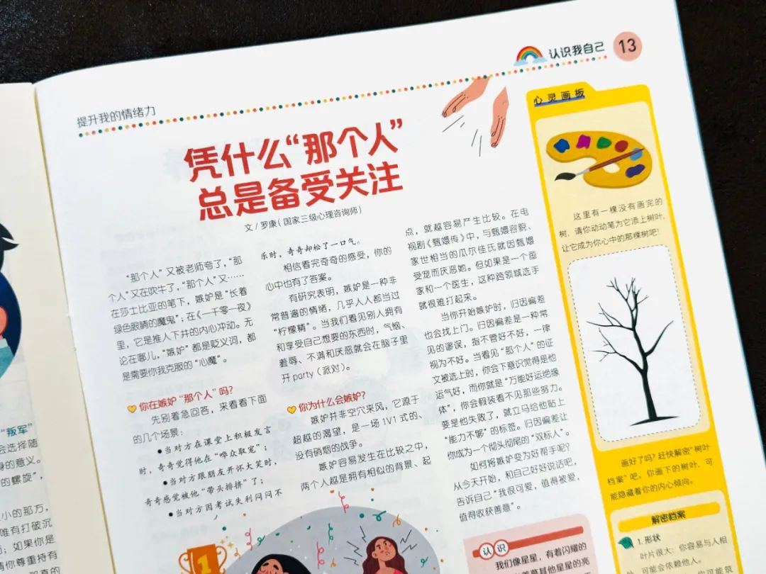 市面上,以青少年心理为主的期刊,可以说这是第一套。由创刊44年,多次获全国“百强报刊”等等奖项的《课堂内外》出品。每月两期,内容几乎囊括了孩子成长路上,会遇到的所有心理问题。勇气与自信、团结合作、抗挫力、社交、沟通、学习、安全教育、接纳自己、学会爱人、快乐交朋友……它是孩子成长路上的心理指南读物,100多位国际心理教育专家和一线心理教师解答孩子常见的心理问题——孩子常常感觉到不自信?总过分在意他人的评价?不知道如何与人交往?“放松训练+认知重建+赋能训练”,提升孩子的自信力、交往力 ;学习效率低?“清单法”提升效率,“时钟番茄法”管理好时间,劳逸结合。它是一本未来职业规划书,揭秘国内外各大高校、专业、职业的奥秘。喜欢画画的你,未来可以做什么?漫画编剧、动画设计师、插画师......现身讲述每个行业的运作背景,早早为孩子铺路。它也紧跟时事,带孩子尽览当月值得关注的世界事+中国事“天宫”空间站,风靡全球的AI技术,日本核污水排海、大英博物馆被盗、金砖国家扩员....这些热门、严肃、宏观的新闻大事件,用看得懂的方式,轻松讲给孩子听。哲学、艺术、财商教育、历史......用丰富的知识,提升孩子的谈吐、品味。鲁迅原名是什么?沈从文为何叫“从文”?张恨水在“恨”什么......一期=心理疏导书+未来规划书+全通识期刊+作文素材书赠礼1 售价44元的男生+女生秘密书,解锁青春期密码。赠品加起来,都超过期刊价格啦!真的超值!仅限十点平台!《青少年心理报》2024.5-2025.4,全年24期,每月两期,包邮到家。算下来,每天一块多,就能让孩子拥有成长路上的指路人,太值啦~ 《青少年心理报》由1979年创办至今的《课堂内外》和重庆日报联合出品。曾先后荣获“中国优秀科普期刊”“全国百强报刊”“全国优秀少儿报刊”等等大奖。因为是写给孩子的心理期刊,整套期刊特邀100多位心理学教育专家和一线心理教师,北大教育心理学学士、三甲医院心理医生、联合国青少年心理保护中国大区理事、国家二级心理咨询师、中国科学院心理研究所硕士......他们最懂得如何用孩子能接受的方式,解答关于自我认知、压力、情绪管理、人际交往、学习考试等等的各种疑惑。没有深奥的专业理论,都是从实际生活中遇到的问题出发,“场景+方法”结合——国家二级心理咨询师,先解释出现考前焦虑,是“消极心理暗示”在作祟。接着用4个步骤,教孩子学会“积极心理暗示”,摆脱逆境。情景重现+支支招,专家们不止从孩子的角度,解答该如何跟爸妈“有效沟通”。还有青春期孩子爱抬杠、唱反调,这实际上是孩子进入了“第一反抗期”。每一个话题,不仅有理论、有案例,更有详细的重点总结和方法建议。一篇故事带来的震动与感悟,真的远胜家长一百句的说教。 孩子在进入青春期后,都会面临情绪、压力等多方面的问题。很多家长可能都着急错了方向,要么一味指责,要么一味鼓励。《青少年心理报》每一期的内容都包含10+专栏,全方位为孩子做疏导。【大家讲堂·男生女生秘密屋】【认识我自己】【解压星球】【心理奇妙屋】,从自知力、情绪力、沟通力、学习力四大维度,解决孩子的心理问题。如何处理嫉妒心、青春期变声被嘲笑了、跟朋友吵架了、被同学孤立了......100多位一线心理教育专家,解答青春期孩子最容易遇到的心理问题.【阳光新知社】,拓展文学、艺术、科学素养、财商教育等等知识。历史上著名的“垂沙之战”,因为普通樵夫的一句话,改变了楚国历史;达利是个自恋狂,米开朗琪罗不爱洗澡,莎士比亚有好几个马甲?也带你探寻追星经济、盒马&山姆的价格战.....等等背后的经济原理。【生涯探索家】,带孩子揭秘国内外各大高校、相关专业、各个职业的奥秘。