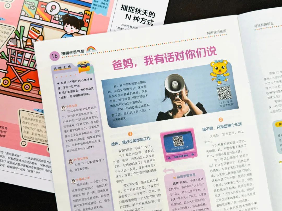 还有一些互动栏目,【秘密树洞】【治愈星球】【心灵圆桌】【甜甜虎特别行动】,每期一个话题,征集来自孩子的各种问题,并由心理专家解答。孩子能看到来自各所学校,同龄人的烦恼,知道原来我的问题别人也会有。专家们也会提供各种解决方法,帮助孩子释放内心积压的情绪,舒缓心情。心智健康成长的路上,家长们一定别让孩子错过这套好书~ 家长经常会抱怨,每天都在讲道理,但孩子反而更不爱听自己说话了,还嫌弃妈妈太唠叨……真正省心的做法,不是说教,而是让孩子知道,每种行为背后有什么心理问题,该如何解决。每期多个主题,知识含量也很高,足够孩子反复看上好几遍!8开彩色大内页,插画清晰,字体大小合适,不会对孩子眼睛造成疲劳。赠礼1 售价44元的男生+女生秘密书,解锁青春期密码。赠品加起来的价值,都超过期刊价格啦!真的超值!仅限十点平台!《青少年心理报》2024.5-2025.4,全年24期,每月两期,包邮到家。算下来,每天一块多,让孩子拥有近在身边的心理老师,顺利解决成长烦恼。