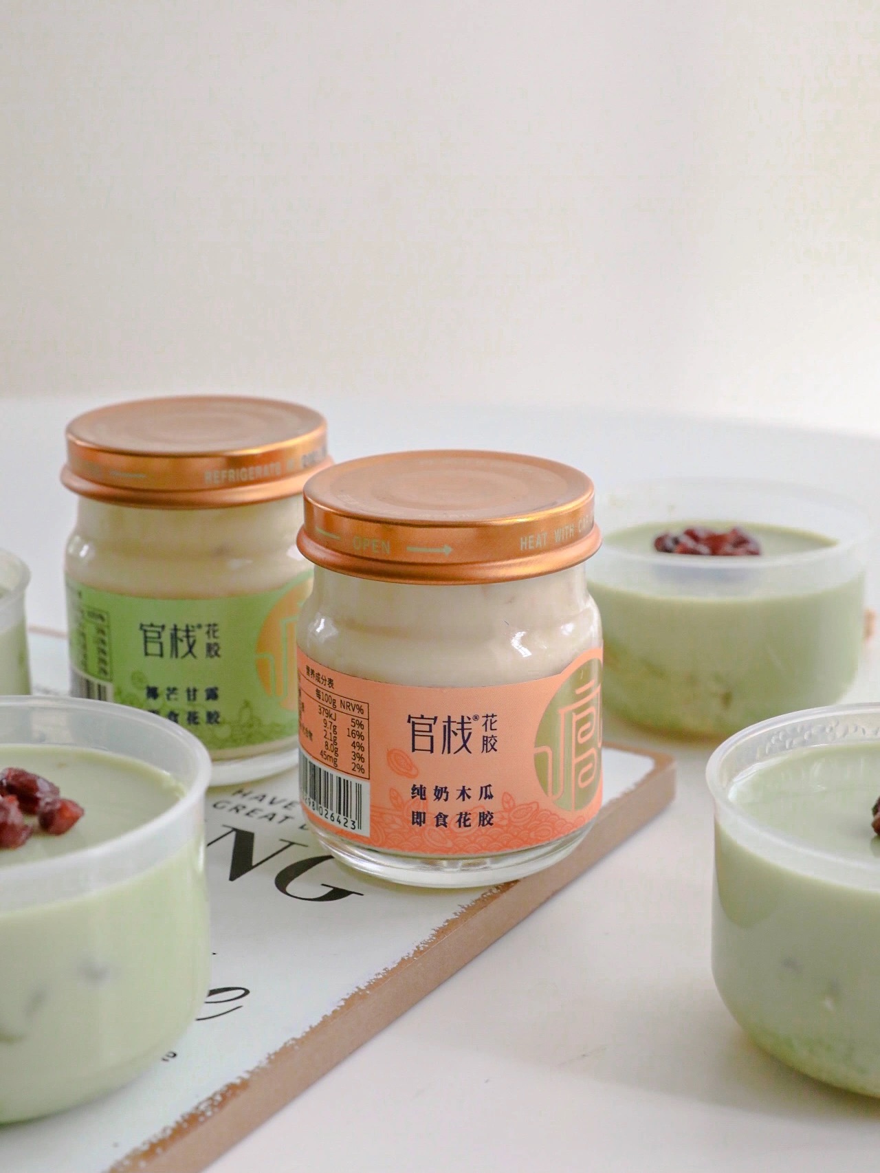 5️⃣倒入一瓶官栈花胶(这个花胶真的好吃又不腥!)放入冰箱冷藏3小时以上