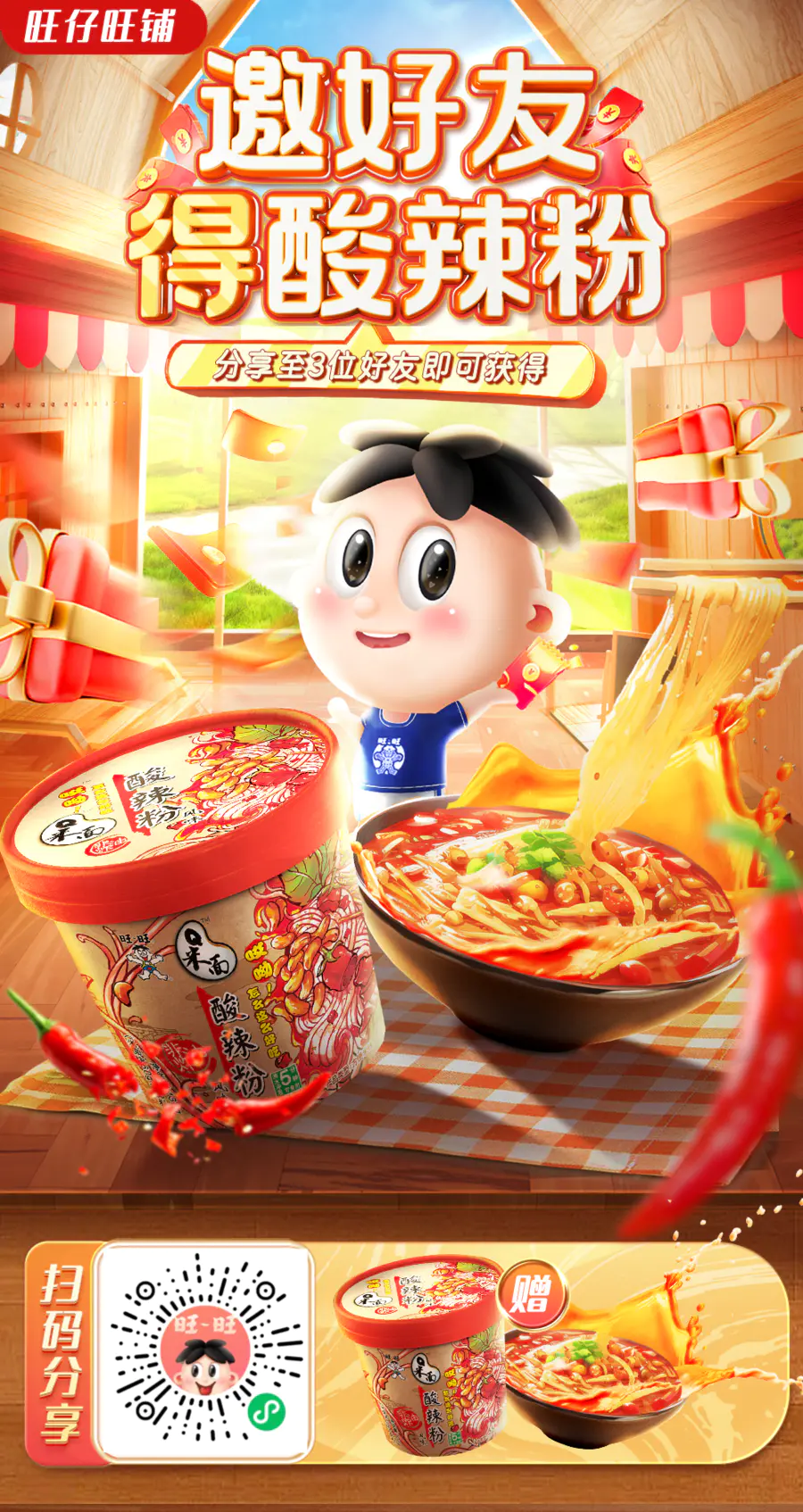 旺仔旺铺免费送酸辣粉啦~
