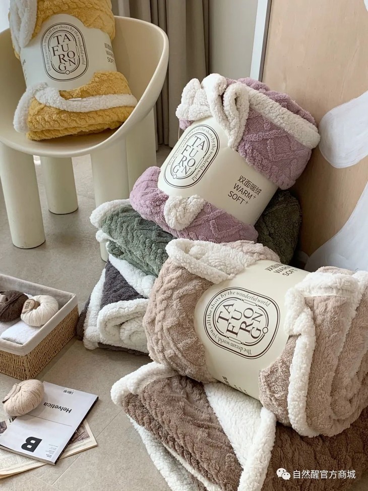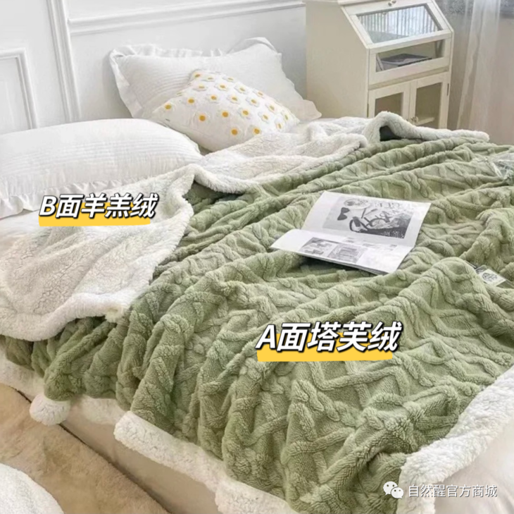 这款塔芙绒羊羔绒毛毯,采用AB双面设计,面料和配色双碰撞。