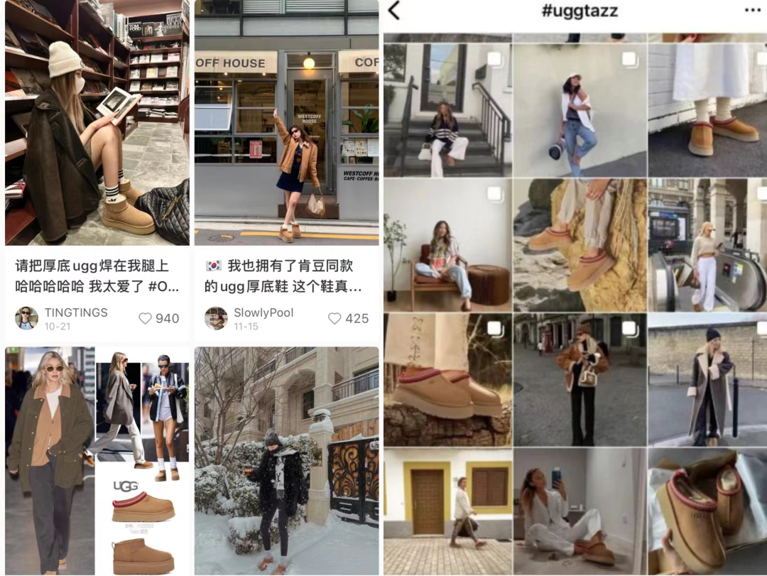 小红书和ins上的求购还有搭配信息,井喷式爆发、美版VOGUE做了统计,平均每一分钟就有人下单买这款UGG。现在简直就是“一鞋难求”!