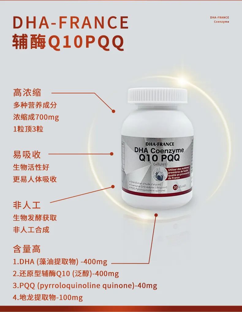 而今天要给大家介绍的,正是基于辅酶 Q10,融合前沿科技与优质配方的 ——DHA - FRANCE DHA辅酶 Q10 + PQQ。
