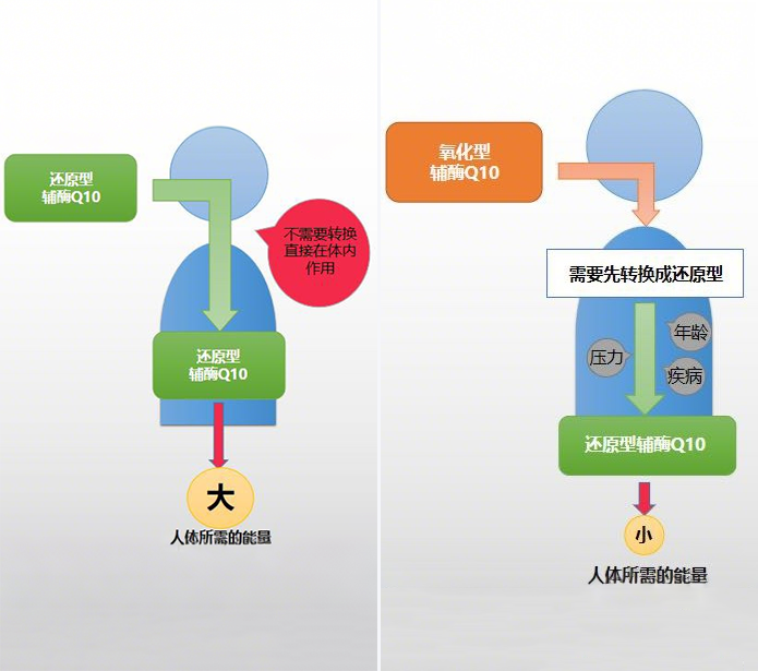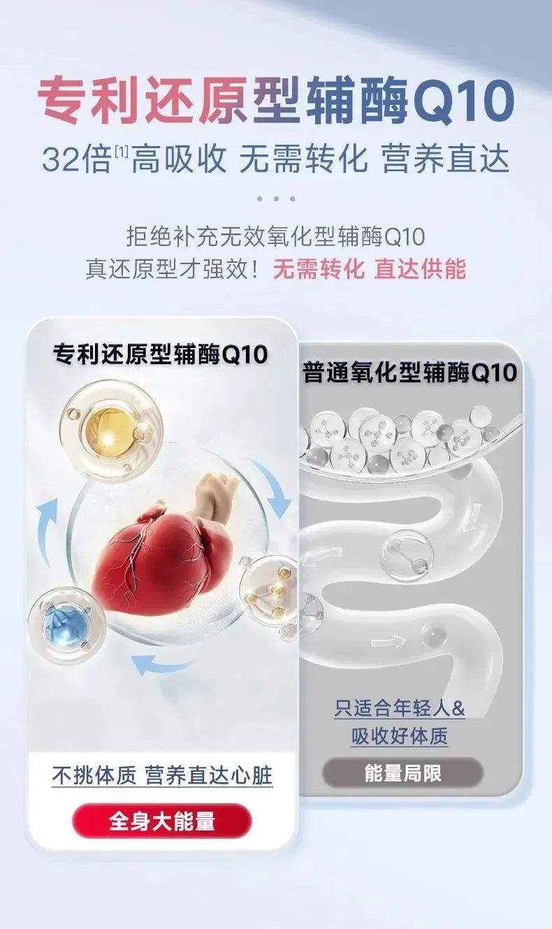 辅酶 Q10 分为 “氧化型” 和 “还原型”,只有 “还原型” 能被人体直接吸收利用。