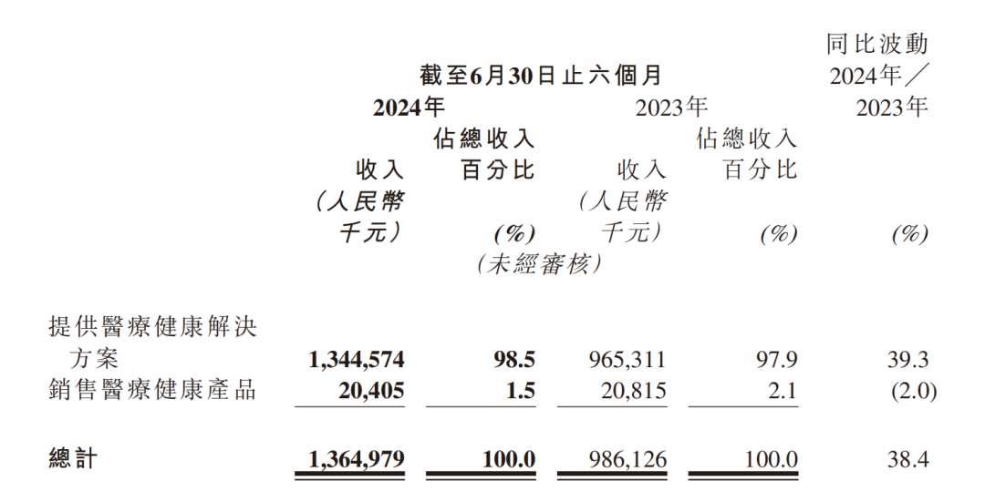 公告称,收入增长主要是由于提供医疗健康解决方案产生的收入增加。来自提供医疗健康解决方案的收入增加至13.44亿元,占总体收入的98.5%,主要是由于线上医疗平台的业务扩张以及新收购及现有线下医疗机构产生的收入增加所致。