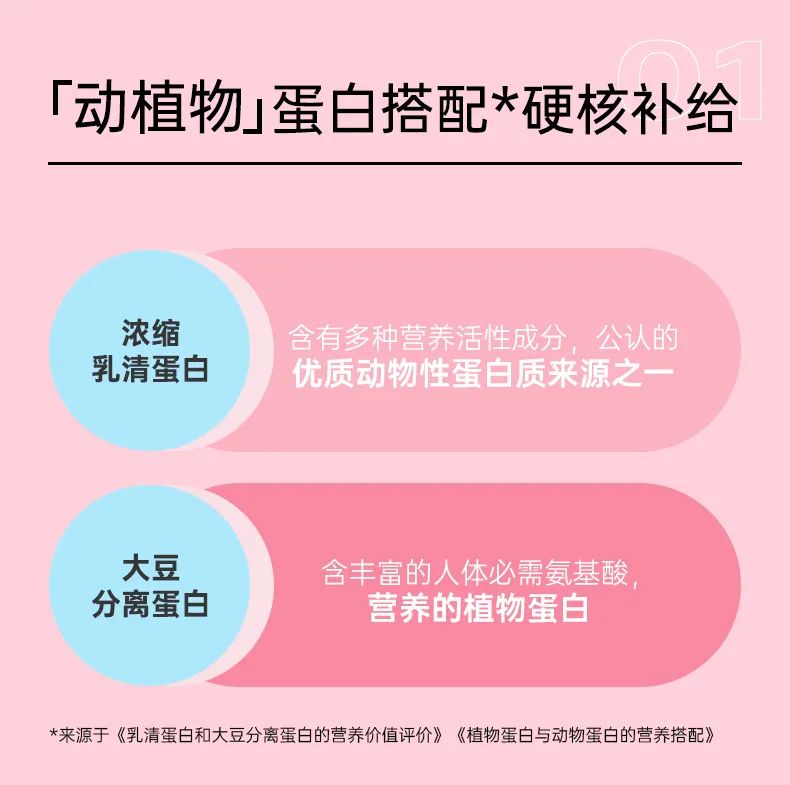 精选优质动、植物蛋白:浓缩乳清蛋白和 大豆分离蛋白。浓缩乳清蛋白含有人体必须的氨基酸和活性营养成分,是人体生长必不可少的蛋白质;大豆分离蛋白含有丰富的氨基酸,硬核补给、超强饱腹感!妈妈再也不用担心我会饿啦~