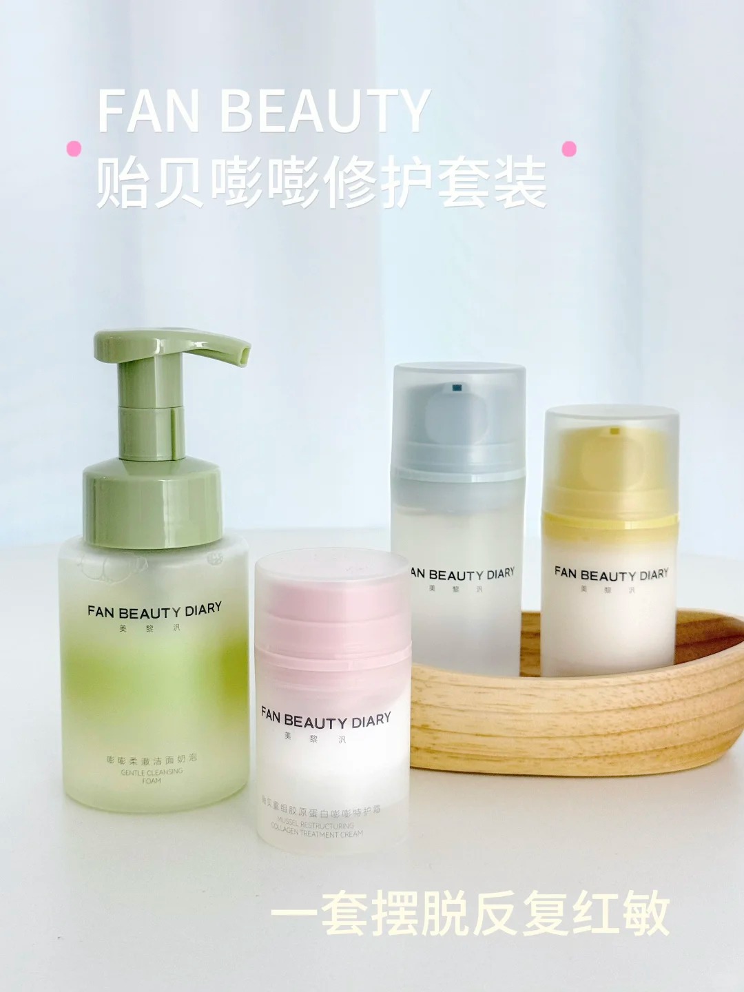换季被红敏脸折磨姐妹们,给你们找到本命修护套组了! 就是FAN BEAUTY贻贝嘭嘭洁面+水+乳+面霜 从清洁到锁护全链路稳场,脸蛋再也不是一吹就破的脆皮了!