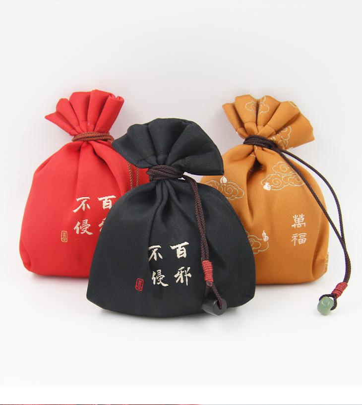 用心的包装:选用高端宫庭织锦缎刺绣绣花,古典大气。