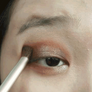 之后再用带闪粉的粉色或者金色眼影