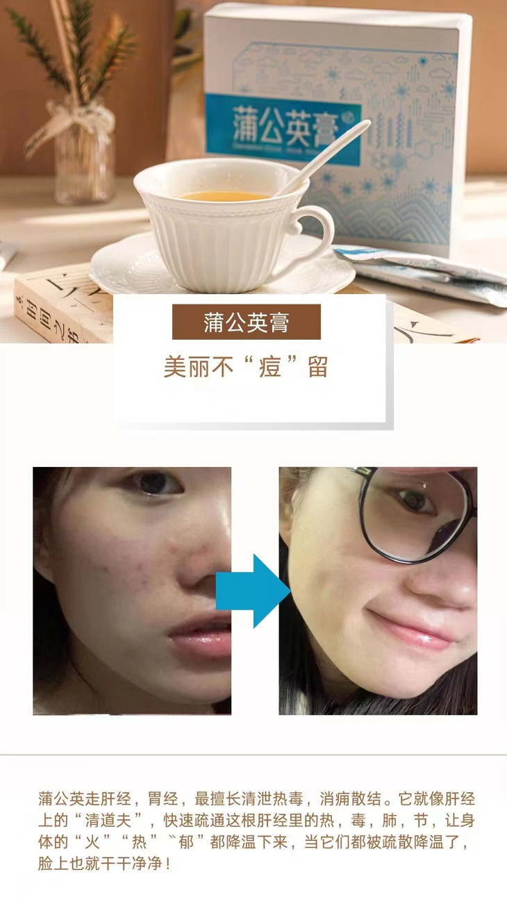 如果你有湿热型痘痘,那种带点红边的、肿起来的痘痘。 湿热型痘痘是体内湿热积聚引起的,舌质发红、舌苔厚、甚至发黄。 《山东中药》:蒲公英为解毒、消炎、清热药。 我们家的蒲公英膏喝起来,内调大于一切外养!!