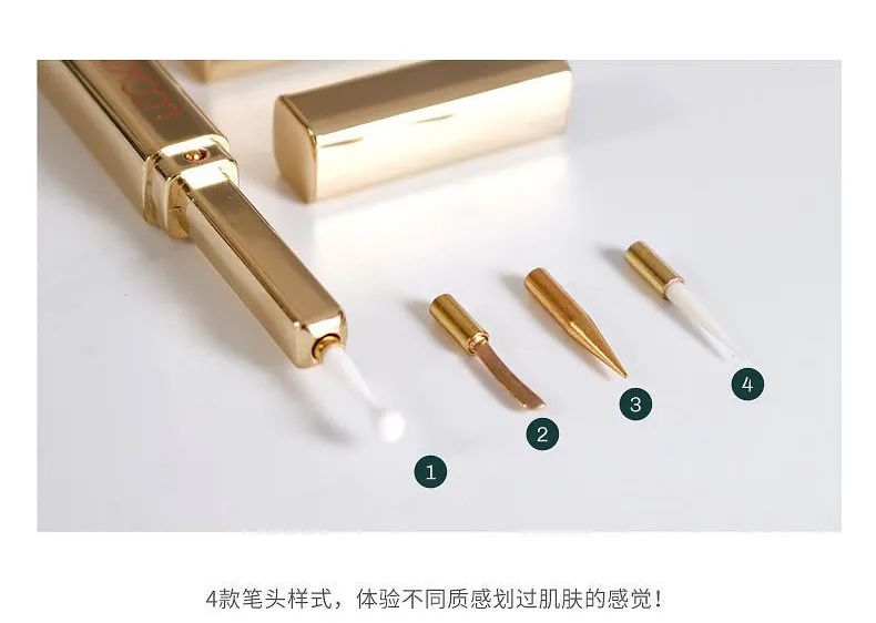 自带4款笔头,硅胶圆头、毛笔头、金属刮头和金属尖头。