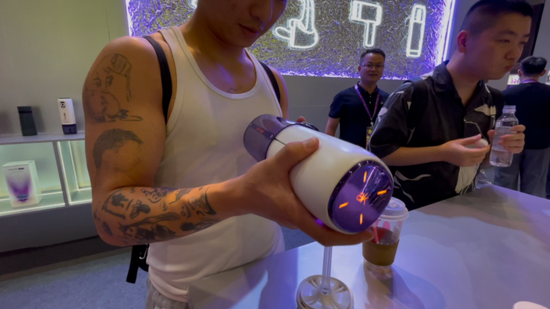 泡机也是此次展会重要的一个部分。经过这么多年的发展,用户对于泡机的认识逐渐提高,随之而来就是对于隐蔽性的追求,比如下面这款泡机,使用时可以安装假扬具。