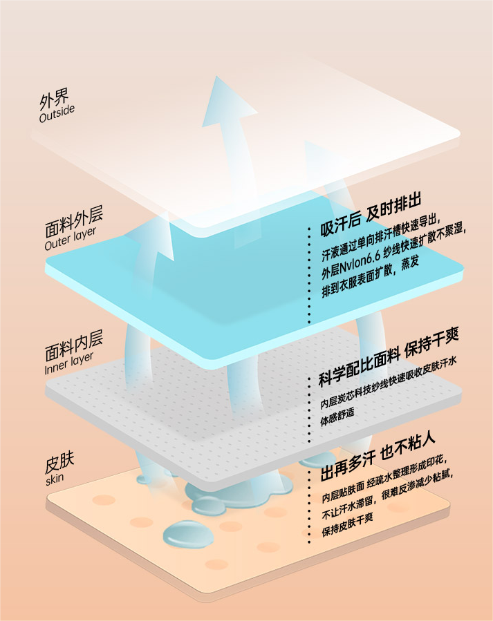 科学配比面料,吸湿速干材质,能快速转移汗水