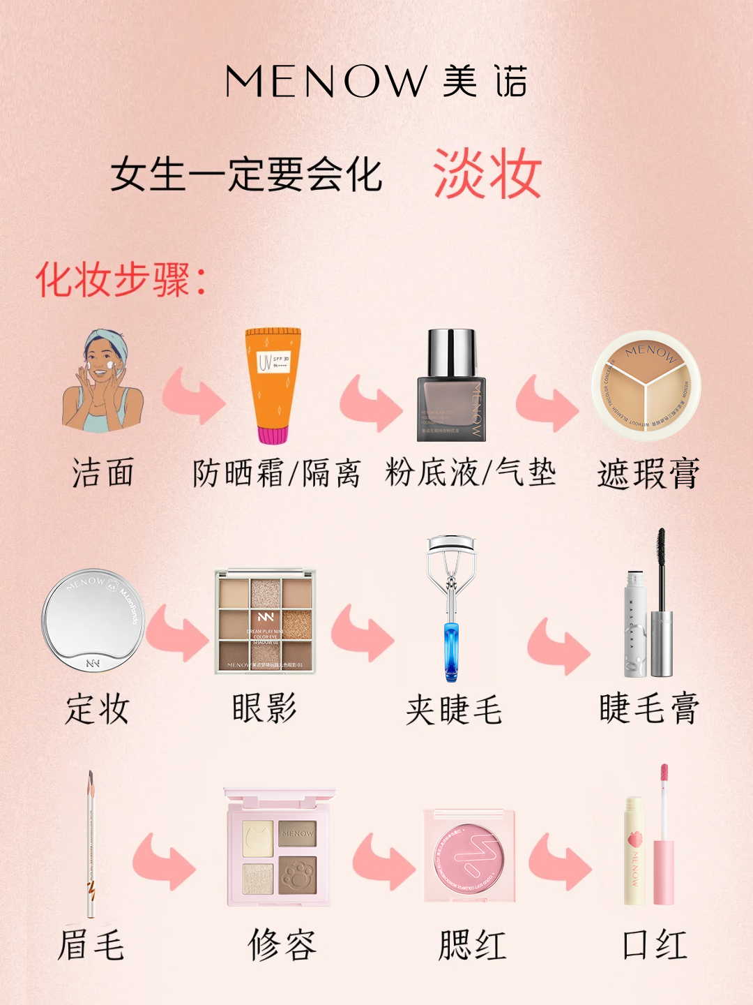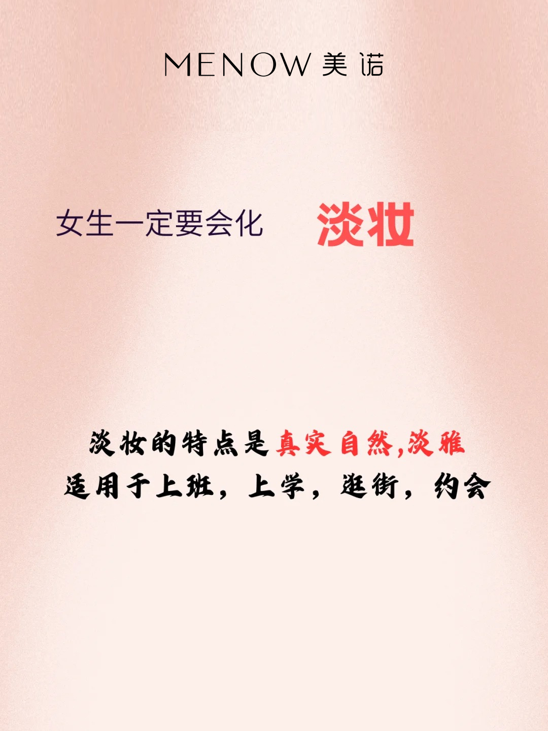 💡 淡妆核心公式 有妆似无妆 = 清透底妆 + 自然眉眼 + 气色唇颊
