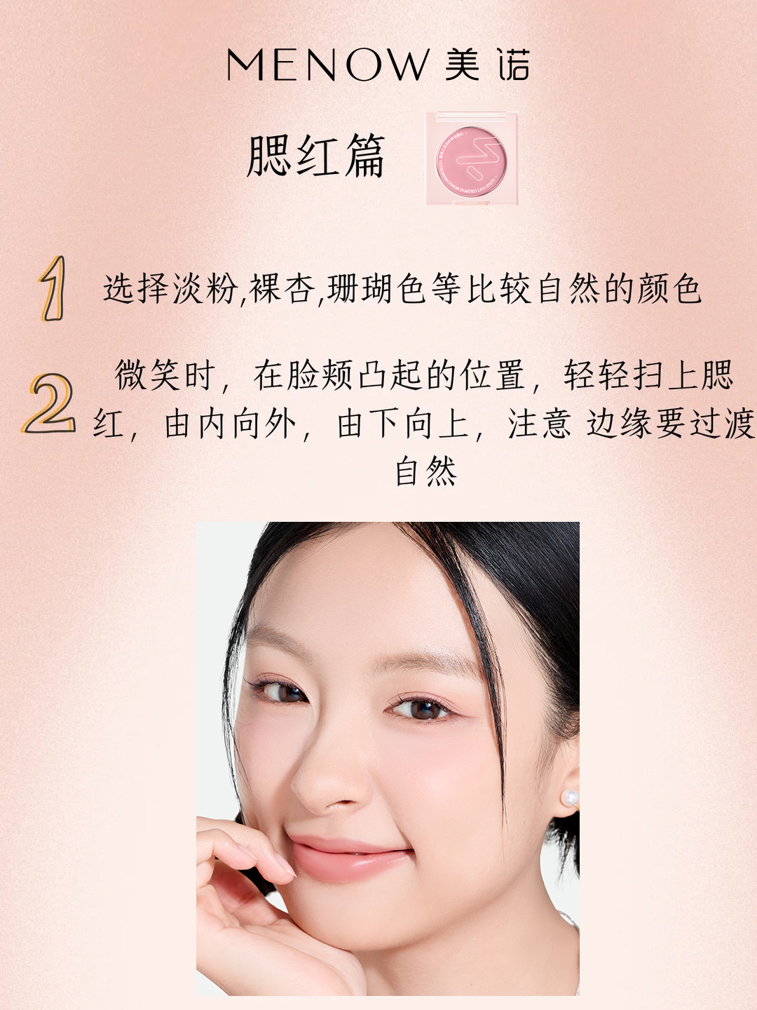 氛围感腮红 苹果肌偏高处 大面积晕染