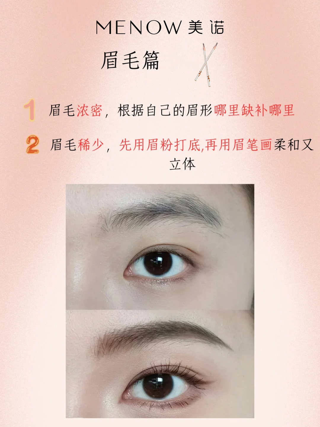 画法步骤 眉粉填充空隙 眉笔画毛流 染眉膏统一色调