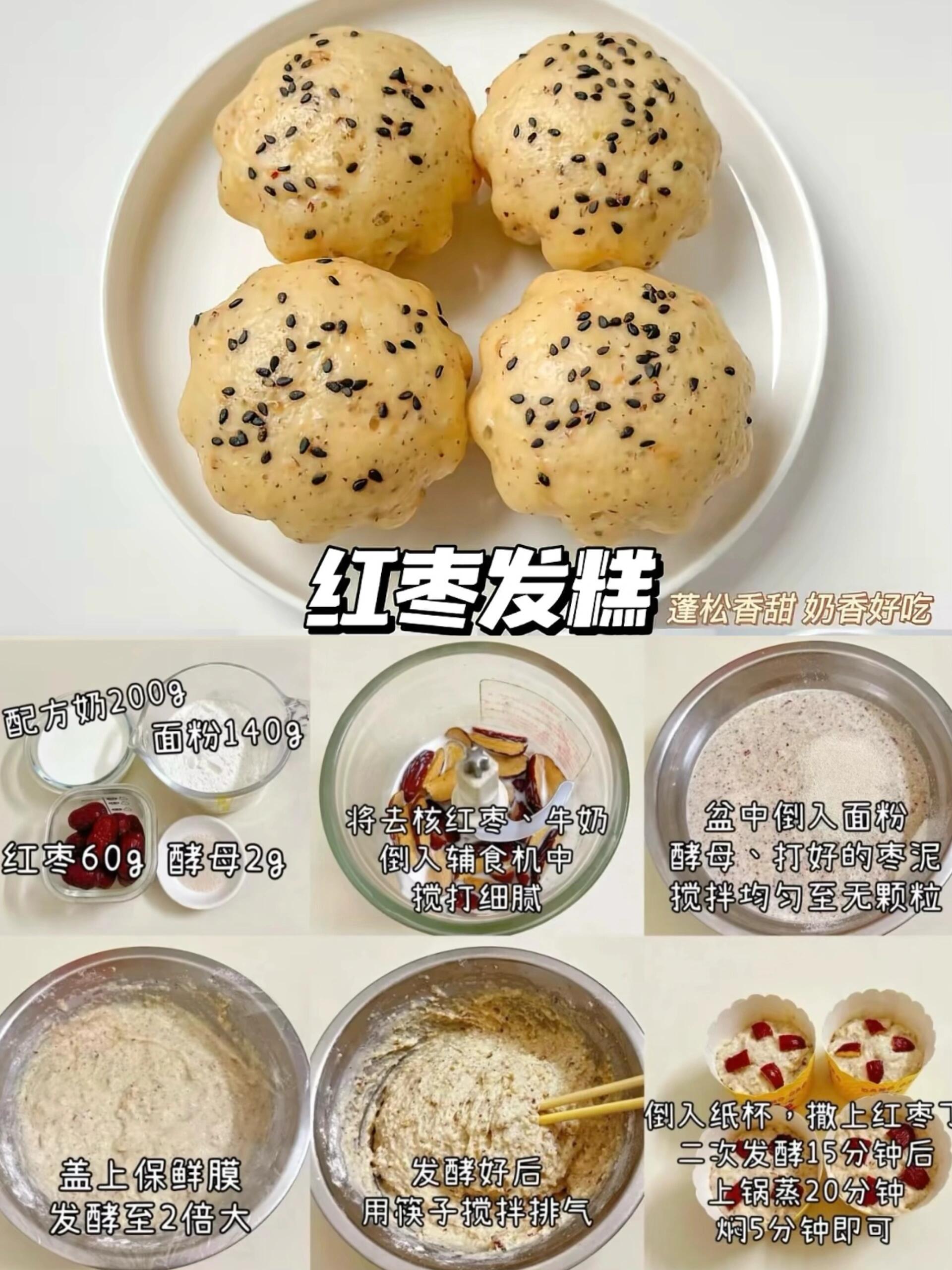 🥰补铁养胃的发糕教程来咯!天然红枣的甜味,搭配牛奶的香浓,蒸出来的发糕蓬松柔软,还能锻炼宝宝的抓握能力~