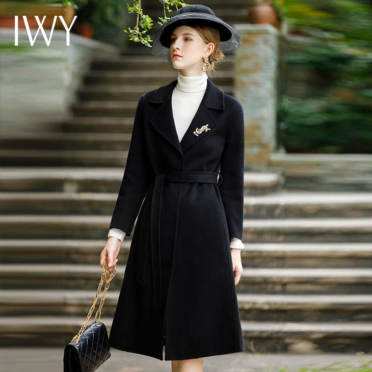 IWY高端羊毛大衣赫本风毛呢黑色J22605
