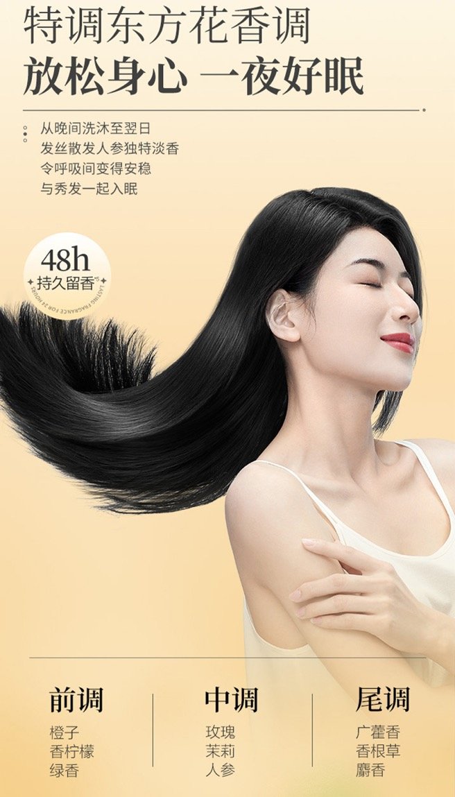 如果您有时因睡眠不佳导致头发油腻,使用这款洗发水将带来舒适的体验。它散发出淡淡的高级人参香,混合着其他植物的清新气息可以让您伴随着香气进入梦乡。