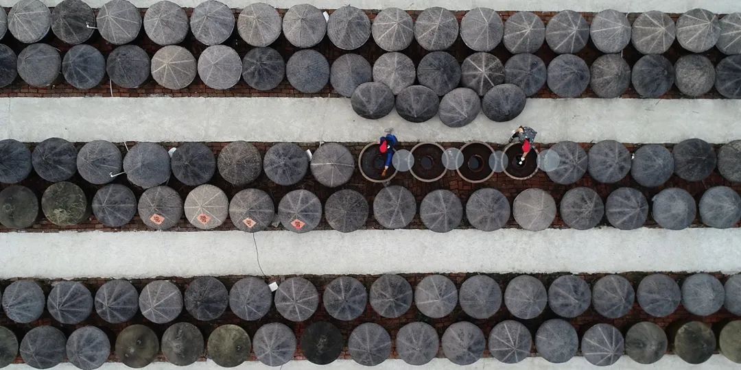 △酱园俯瞰(部分),圆圆的竹制斗笠下是一个个酱缸