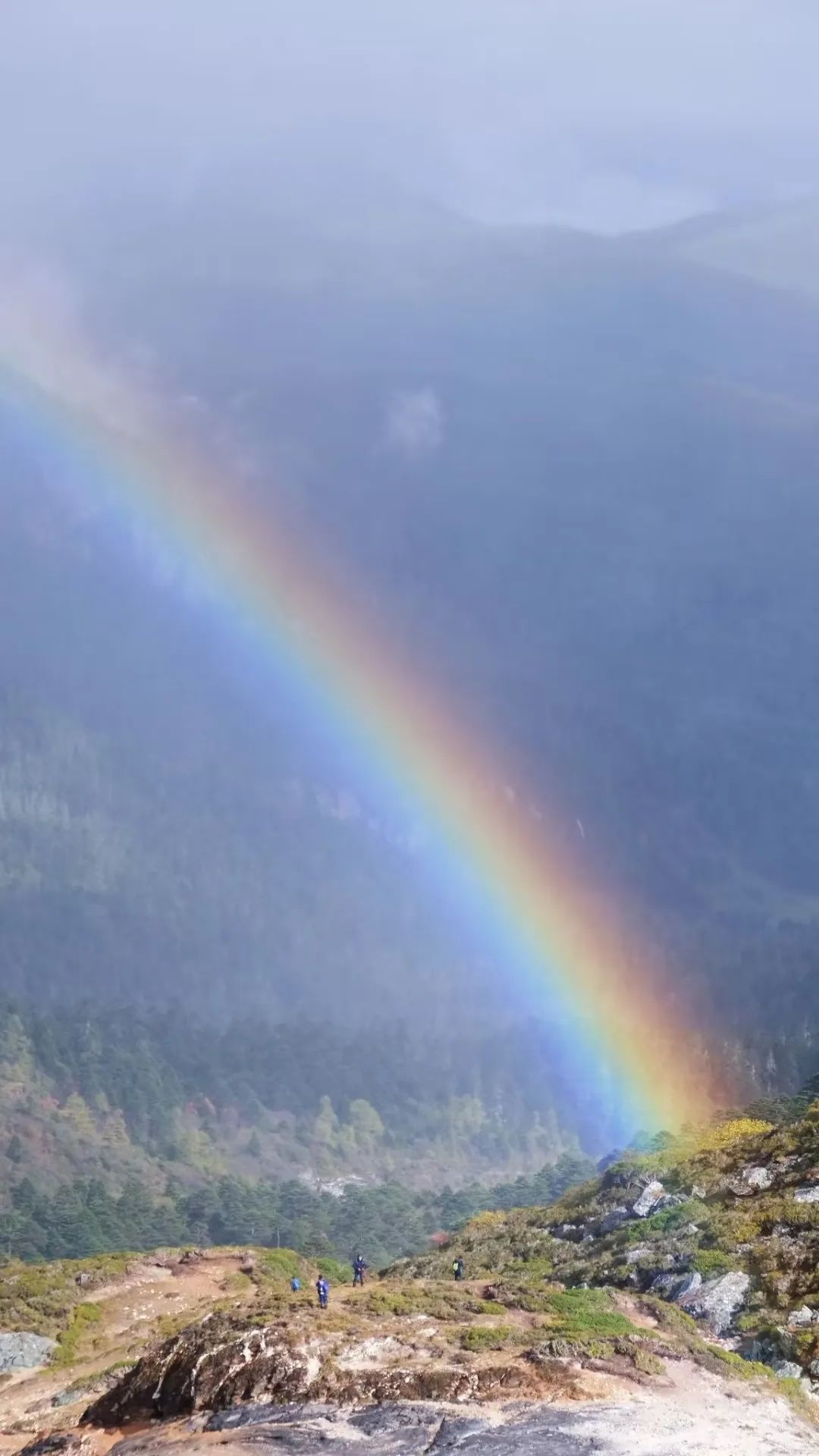 下到大石板,大本营方向的天变得明朗,云海显露,彩虹横生,这额外的馈赠倒也弥补了两点起床爬山的“痛苦”。