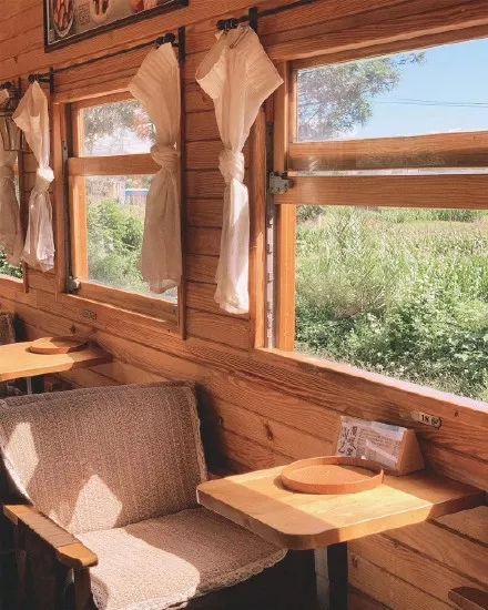 复古的黄木质车厢,电风扇悠悠地吹着,坐上它仿佛坐上了时光隧道,通往了旧电影的篇章。