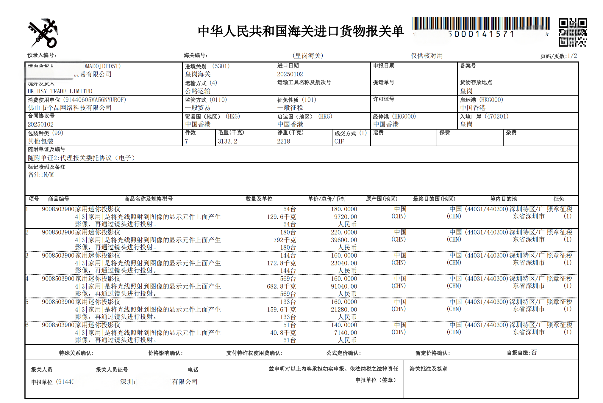 (飞利浦海关投影报关单)