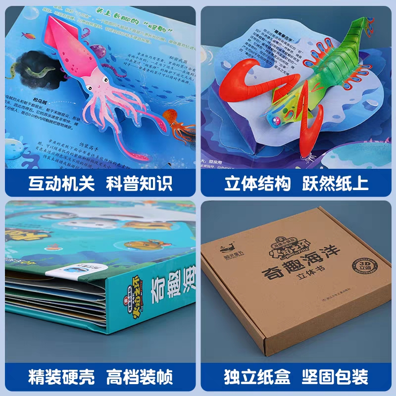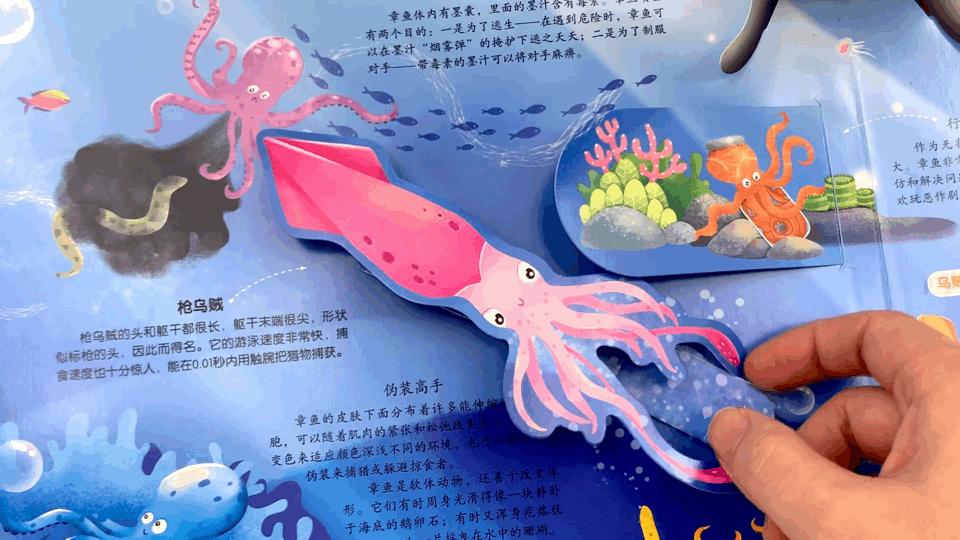 和市面上的追求“昙花一现”的立体书不一样,《海底小纵队奇趣海洋立体书》可不是花架子。7大海洋场景里,藏了100多个知识点。各种翻页、拉页小机关,满满的都是新知识!引得孩子连连惊呼!全书介绍了孩子们最感兴趣的7大种类、40多种奇妙的海洋生物,够孩子研究大半个月!