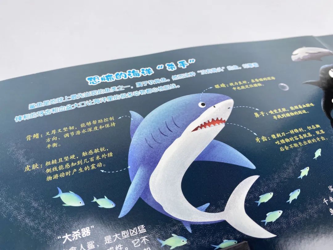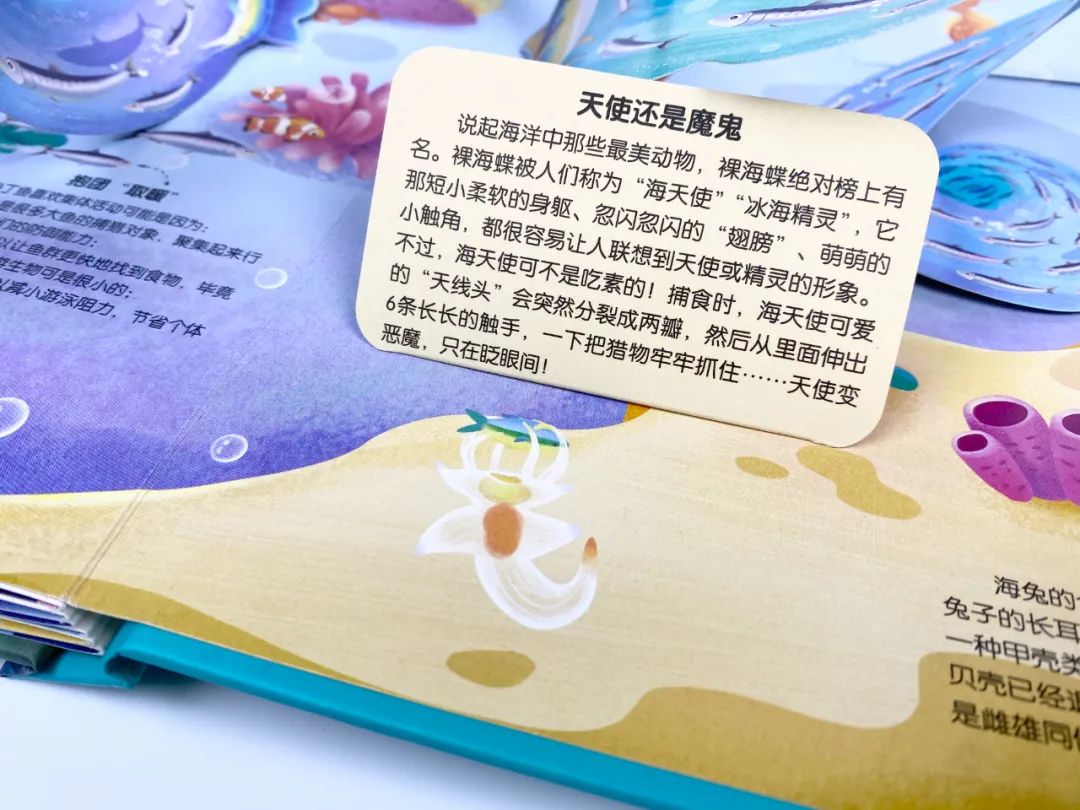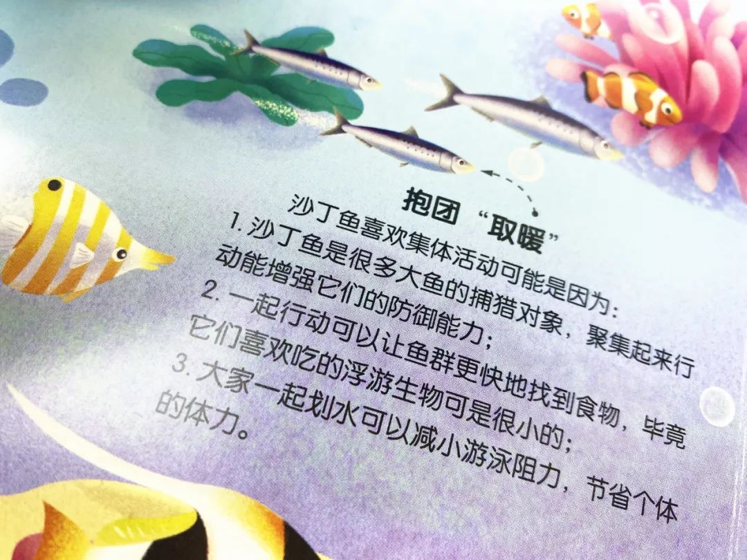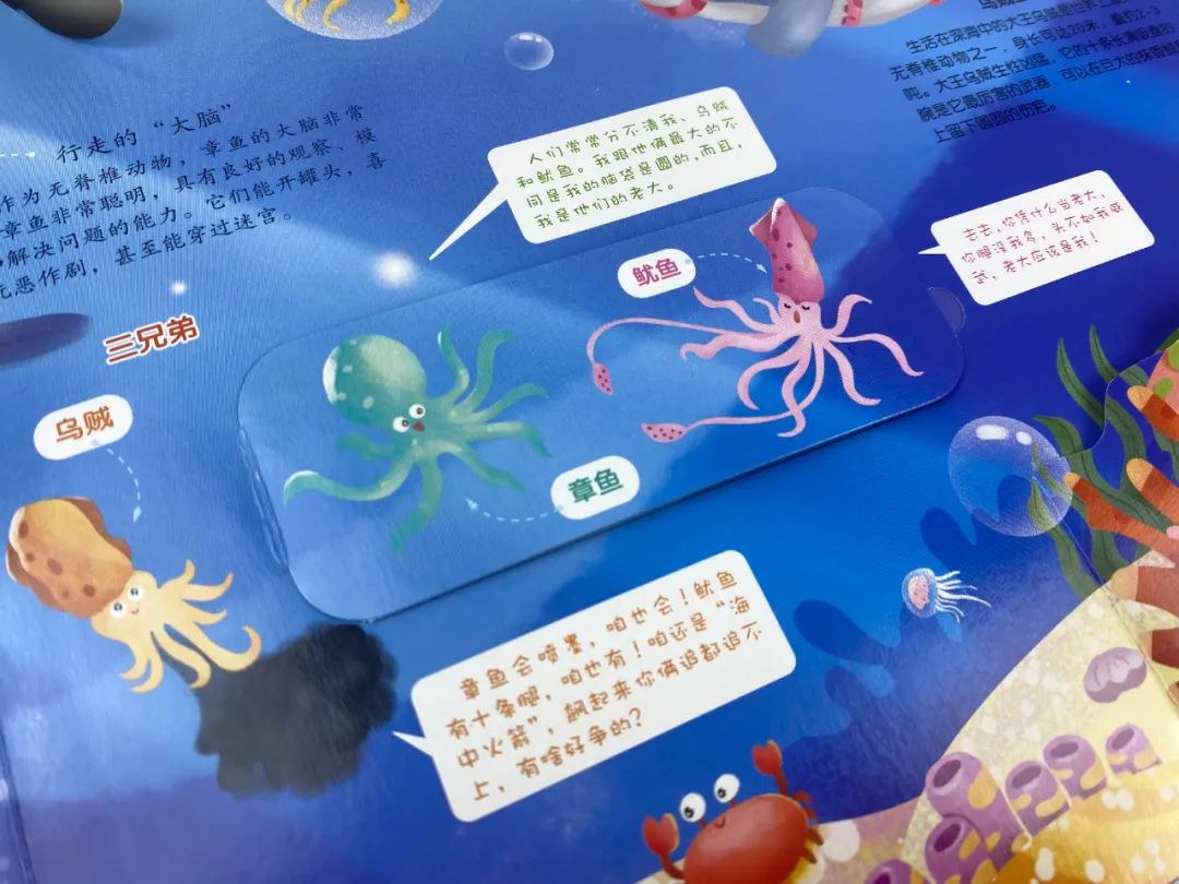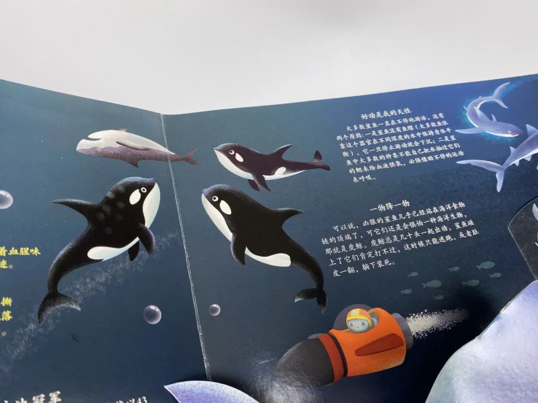它满足了孩子对浩瀚海洋的幻想,也打开了孩子认识世界的大门。孩子的眼界不再停留在目光所及,通过这些海洋知识,孩子能去想象、感知陌生的生命力,拥抱更大的世界。