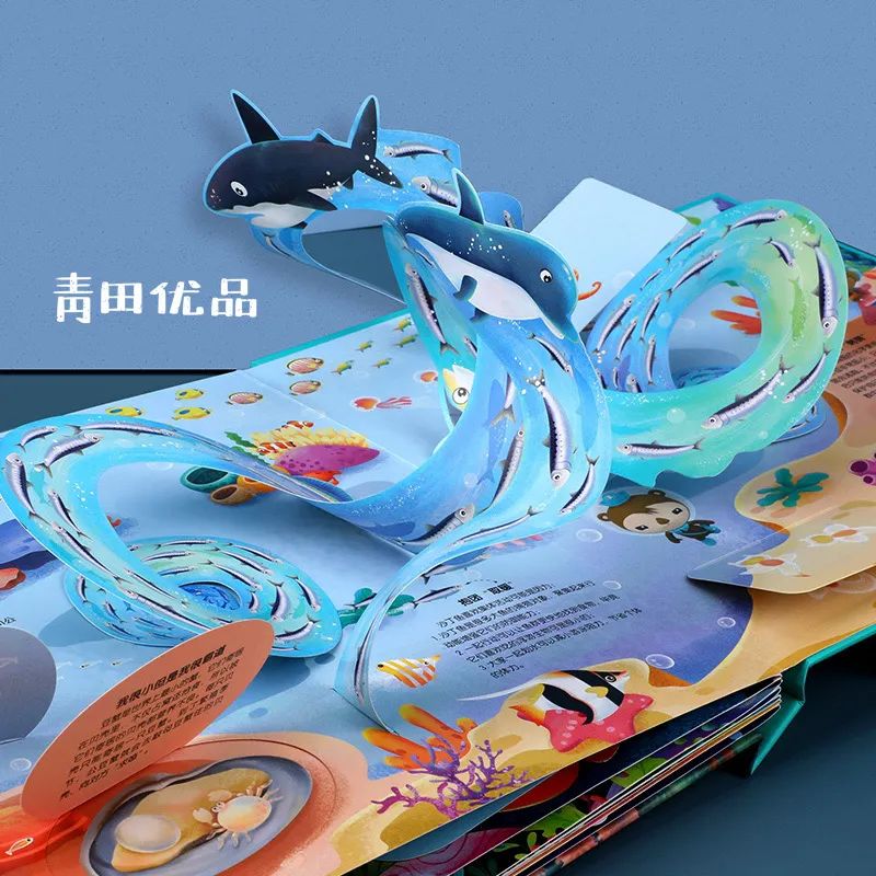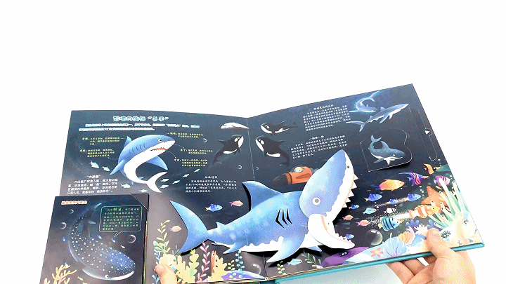 鲸鲨不是鲸,更不是鲸鱼和鲨鱼的混血儿。鲸鲨是最大的鱼,因为个头大所以名字里才有个“鲸”字哦!以这样风趣的口味、好玩的形式,补全知识,以免孩子被不全面的信息误导。这些神秘的海洋生物,“背后的故事”往往让人大跌眼镜,不禁感慨海洋的包容性和生命的精彩。我们都知道,看视频时,大脑是被动画画面的声光影快速切换牵着走的,处于被动状态。想要孩子“过目不忘”,还是要把被动变成主动。比如,阅读文字、画画、笔记等方式, 孩子自主控制大脑,主动接讯息。《海底小纵队奇趣海洋立体书》就设计了100多种互动机关,孩子手脑并用,一边「看」,一边动手「玩」,手眼协调能力、对知识的记忆力在和海洋生物的互动中,也不断增强。魔鬼鱼其实性情温和,它们游动起来真像舞池里的绅士啊!