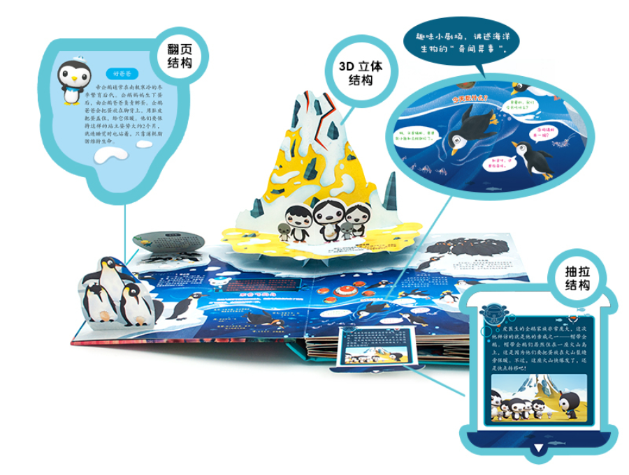 今天海底小纵队用全新的面貌和孩子们见面——《海底小纵队奇趣海洋立体书》!把独立于动画之外的全新内容,搬上书架,让孩子不再依赖电视、手机,也能畅游知识的海洋!