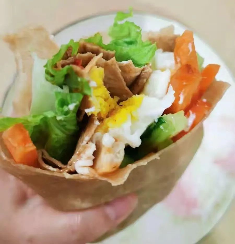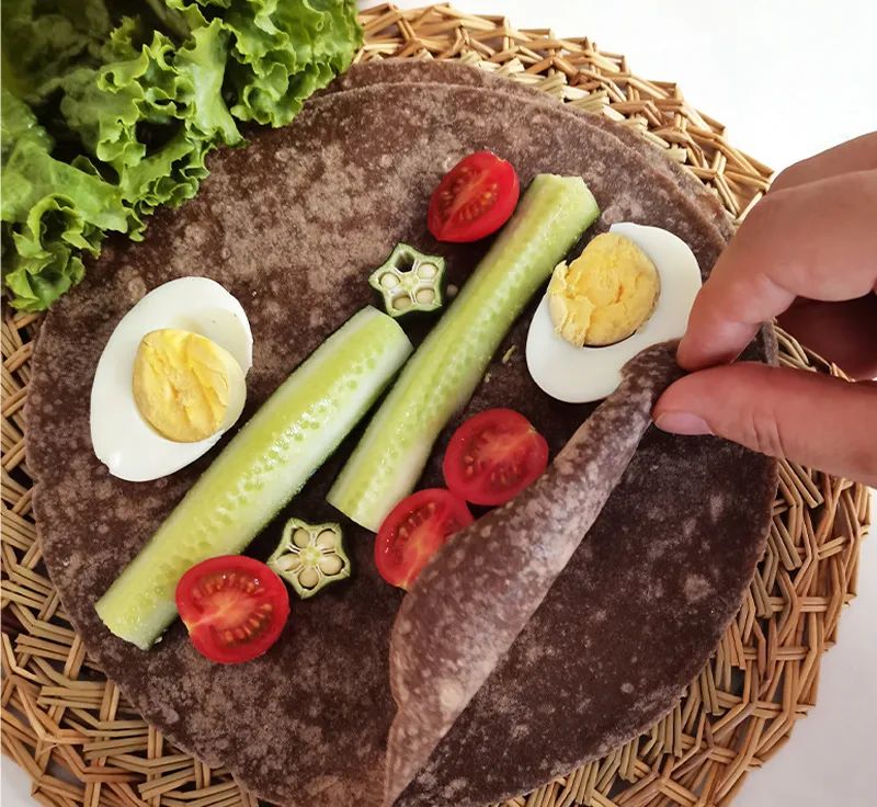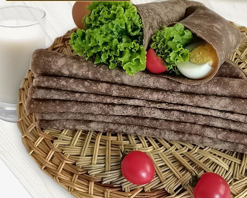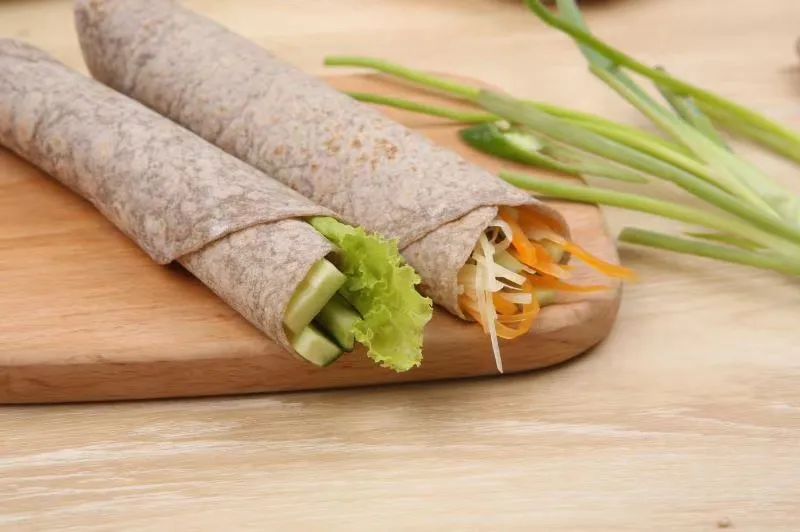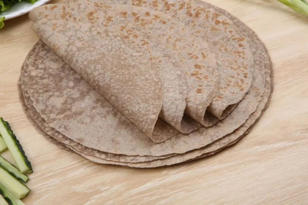 弥补荞麦中蛋白质低的特性,卷饼还添加了50%黑全麦面粉。
