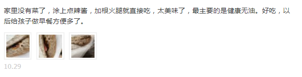 用它做主食,减少热量摄入,更易保持好身材,三高、糖友更适合吃它,好吃没负担。平时冷冻储存,随吃随热,卷饼间还用薄膜分隔,不会粘连。