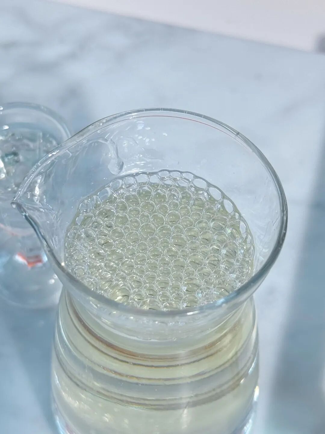 倒入杯中,酒线细长,不断不散,自然老熟。