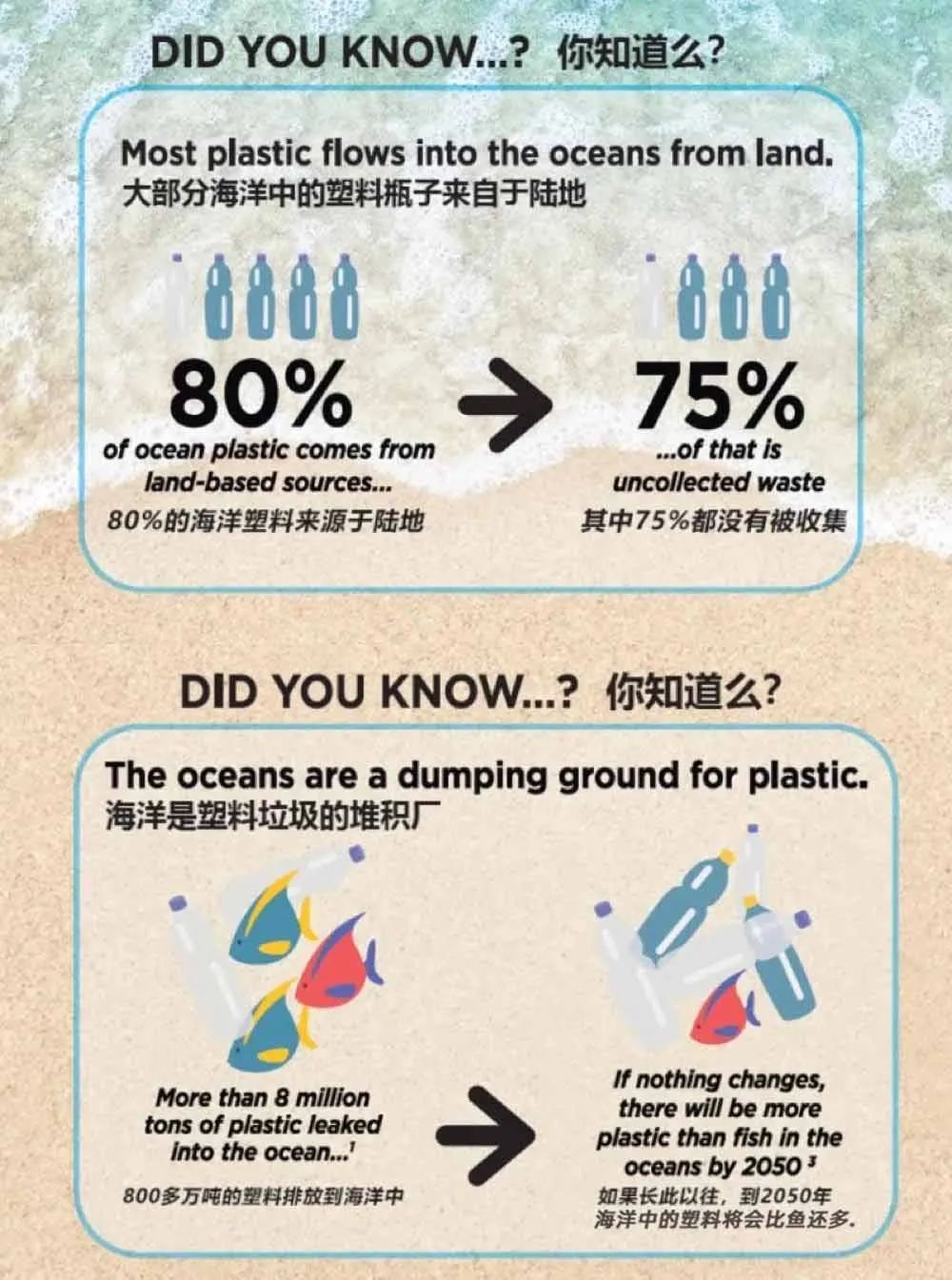 海洋就相当于塑料垃圾的堆积厂,每年都有800多万吨的塑料垃圾被排放到海洋中,而这中间80%的塑料来源于陆地……长此以往,到2050年,海洋中的塑料将会比鱼群还多……
