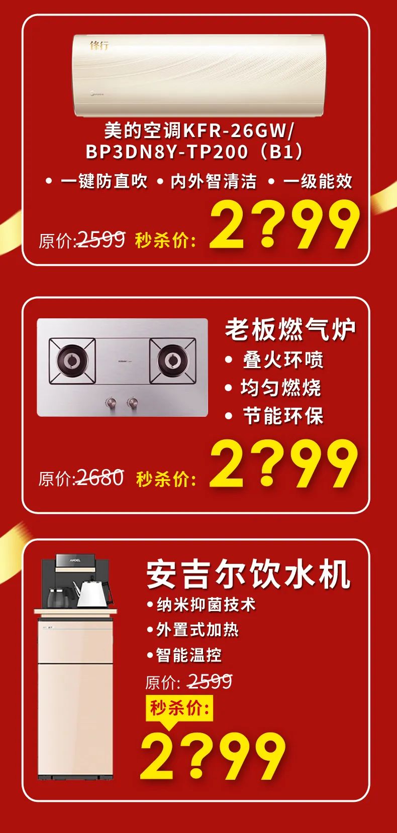 【恒发家电】五大品类限时秒杀!低至1元起!