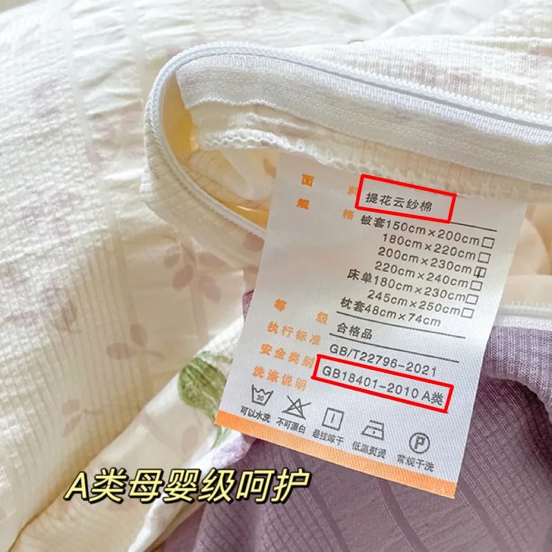 这款四件套完全可以放心盖,经权威检测的A类母婴标准,不含甲醛,不含可分解致癌芳香胺,裸睡也超安心的!