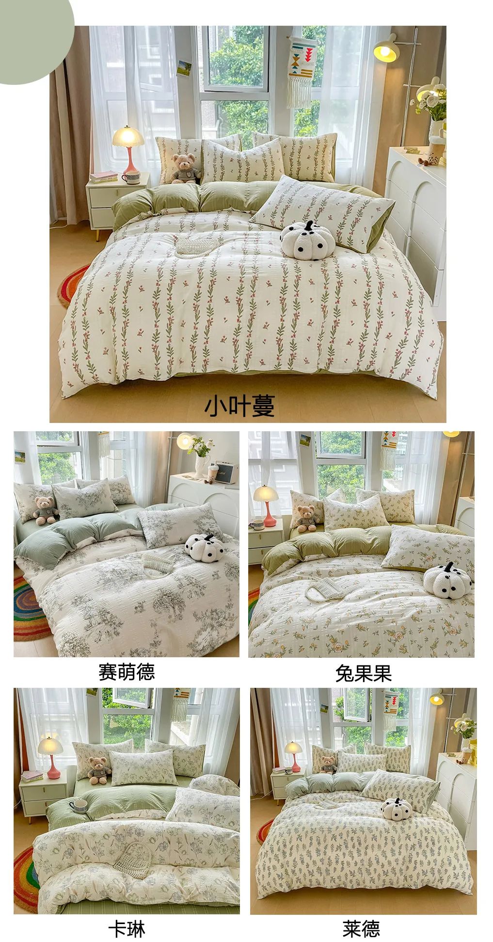 清新绿,有5款花型:充满生机和活力,夏天盖ta就像在森林中漫步,清凉感满满。