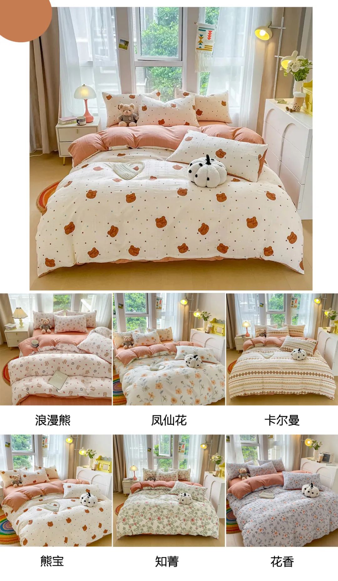温柔橘,有6款花型:颜值担当,一眼望去就是惬意与温馨,就像被轻柔的云朵包裹着,一夜好眠。