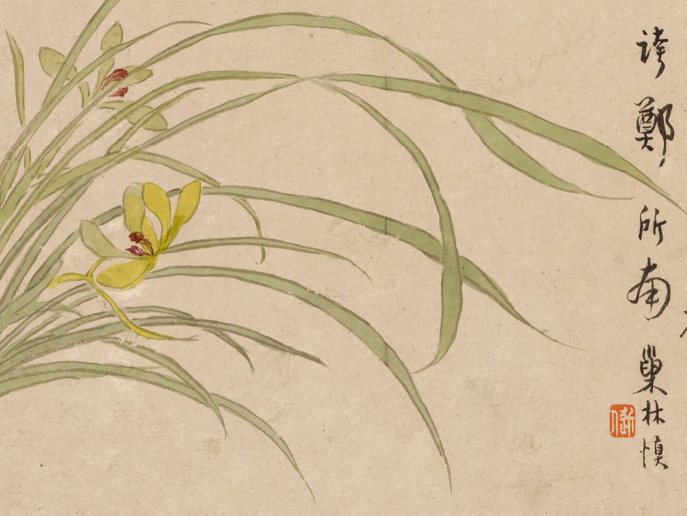 题识:采斸曾闻野老谈,灵根出谷带云岚。美人衿珮差堪拟,不信争夸郑所南。