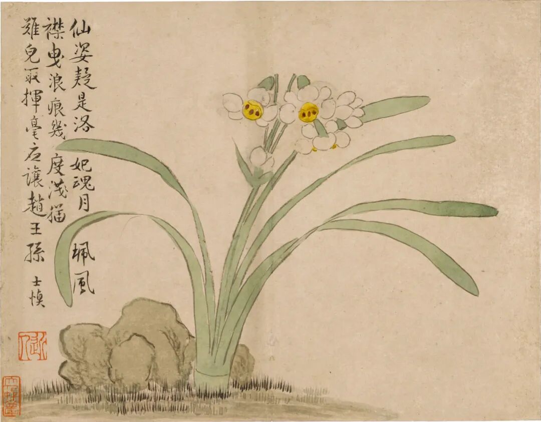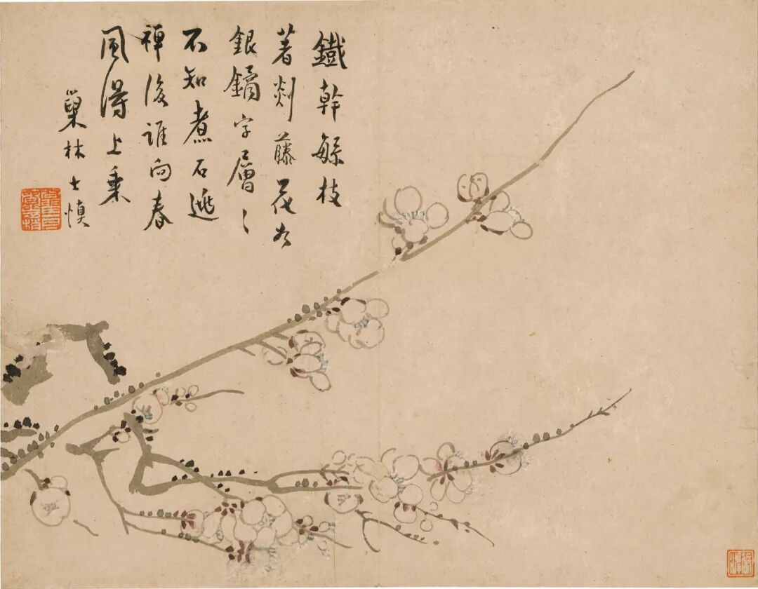 汪士慎以小写意的笔法绘此四时花卉,小构图,不讲究章法的奇险,以特写取胜,平铺直叙,形象素雅,没有柔媚的形态,或工或写,素淡的笔致中蕴含高简的法度,再配以古拙稚质的八分书题诗,既有古意又含雅致,乃汪士慎晚年的精心之作。