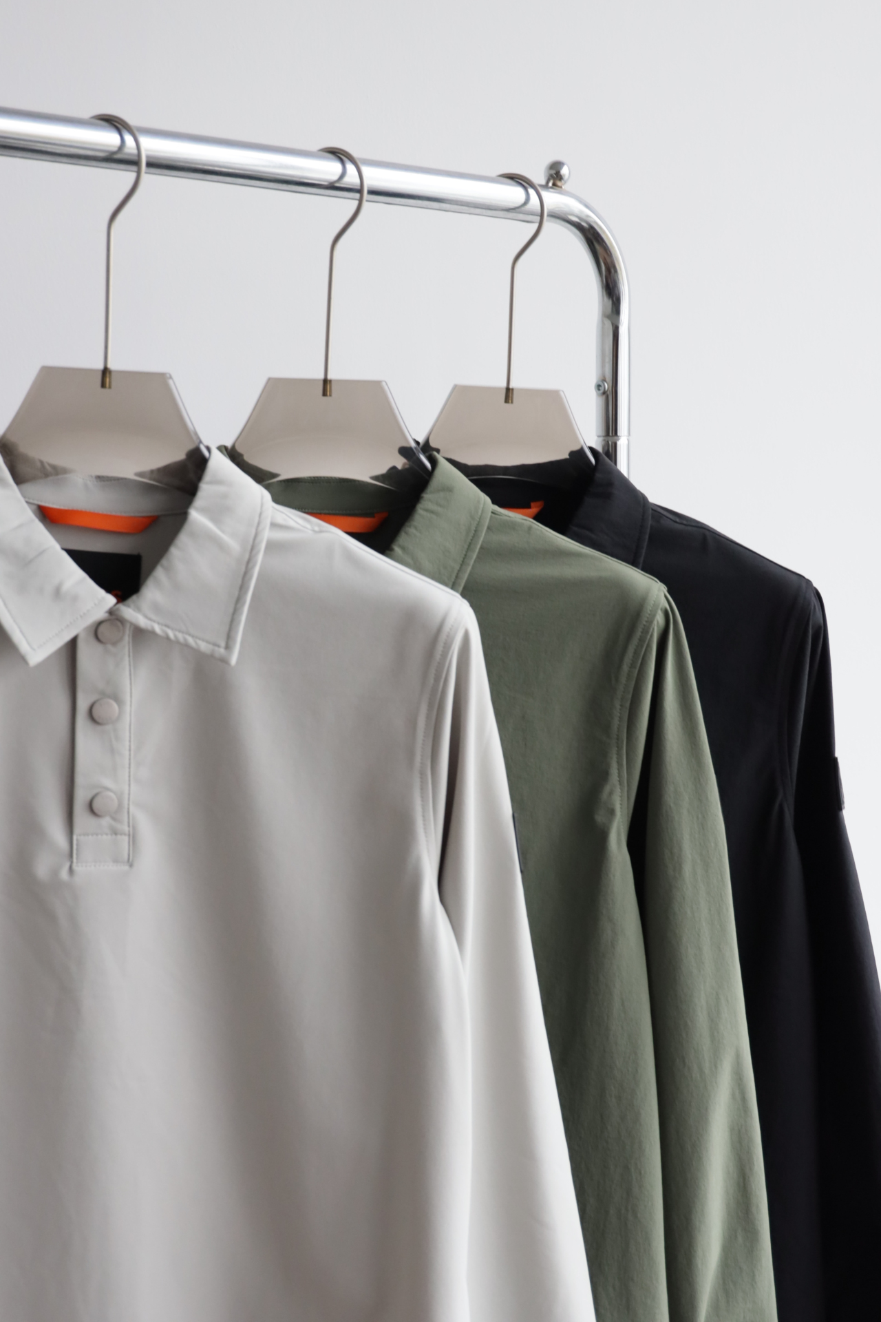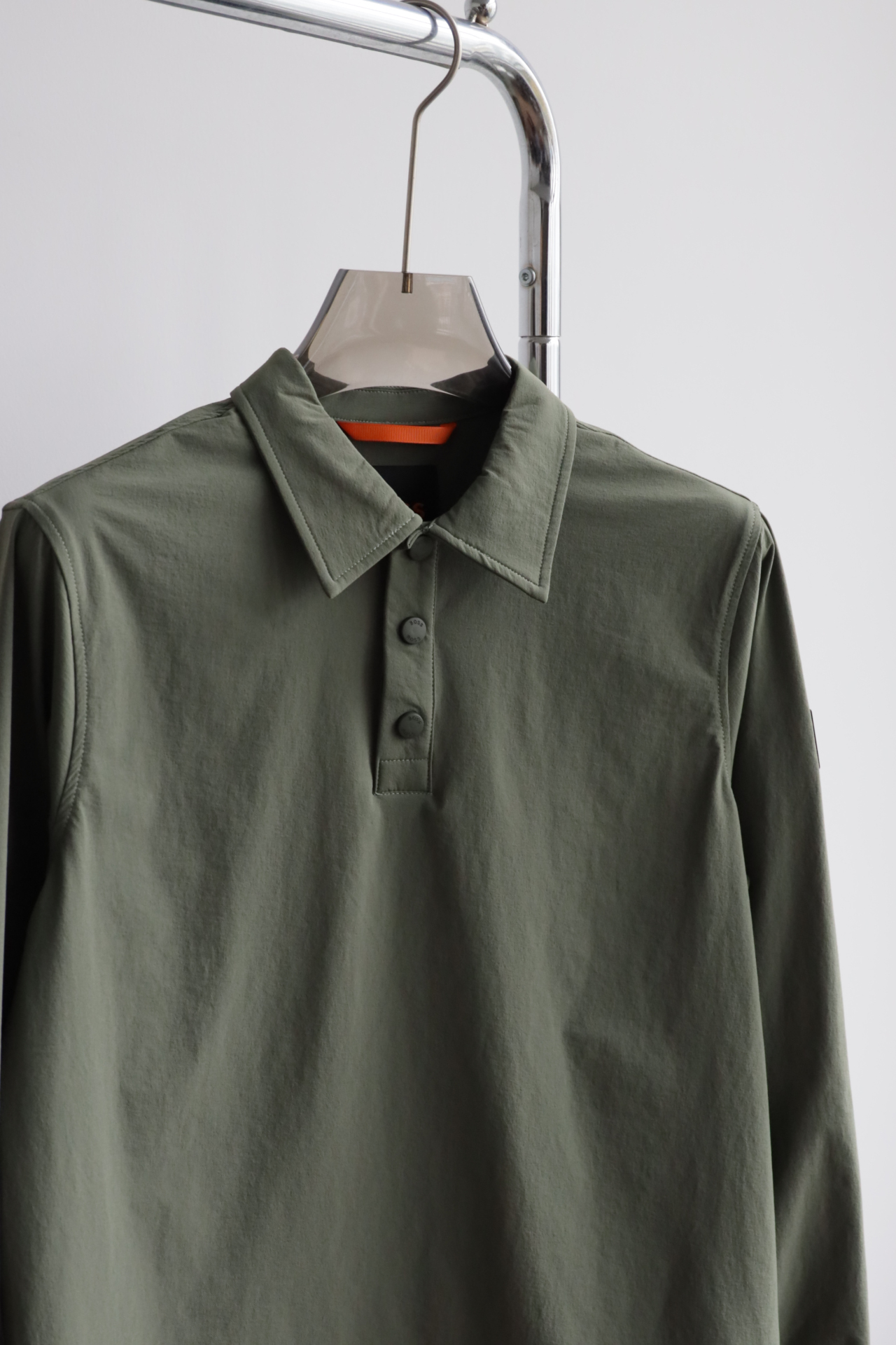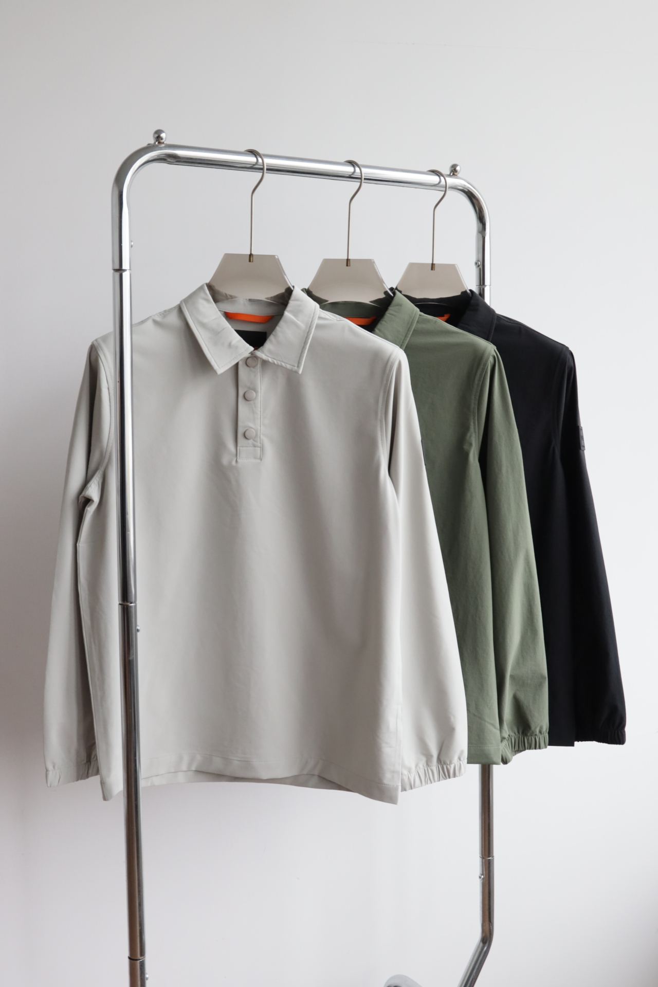 弹力速干,微宽松版型,门襟三粒按扣