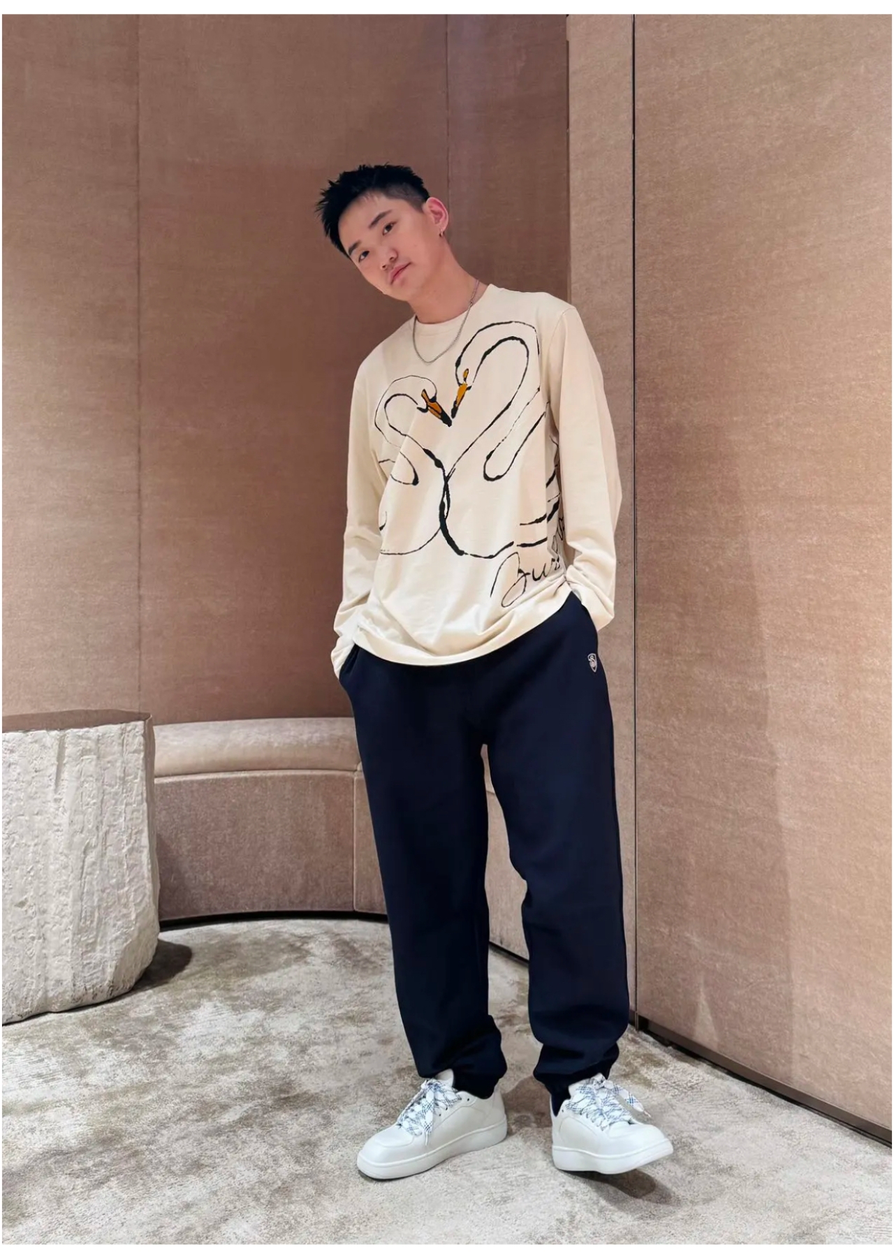 整体宽松上身利落有型。贴身或是叠穿当内搭都可以,简约百搭