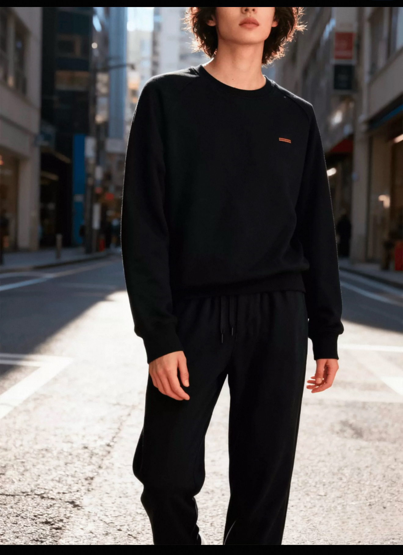 E.Z 双面针织宽松插肩圆领卫衣
