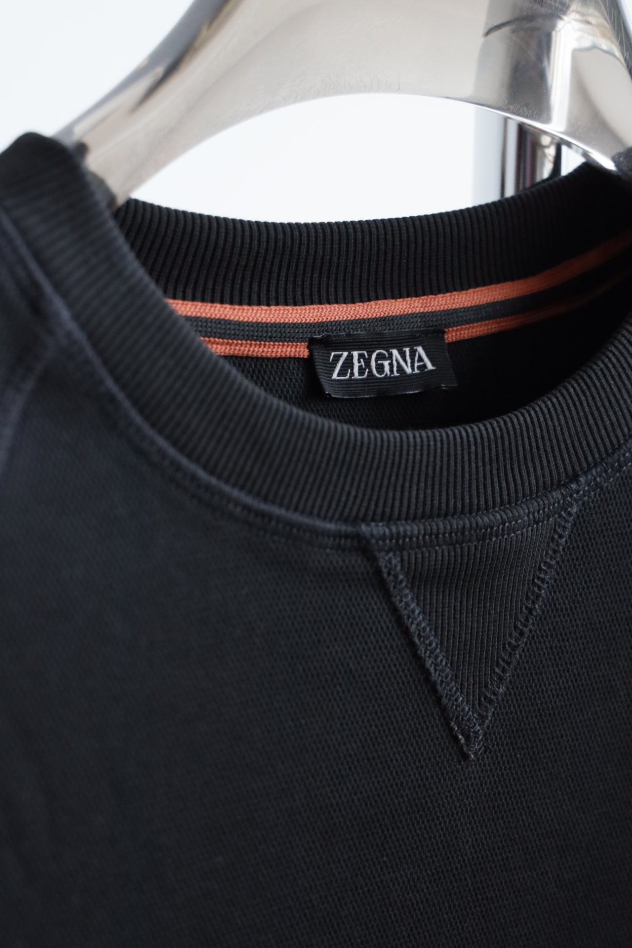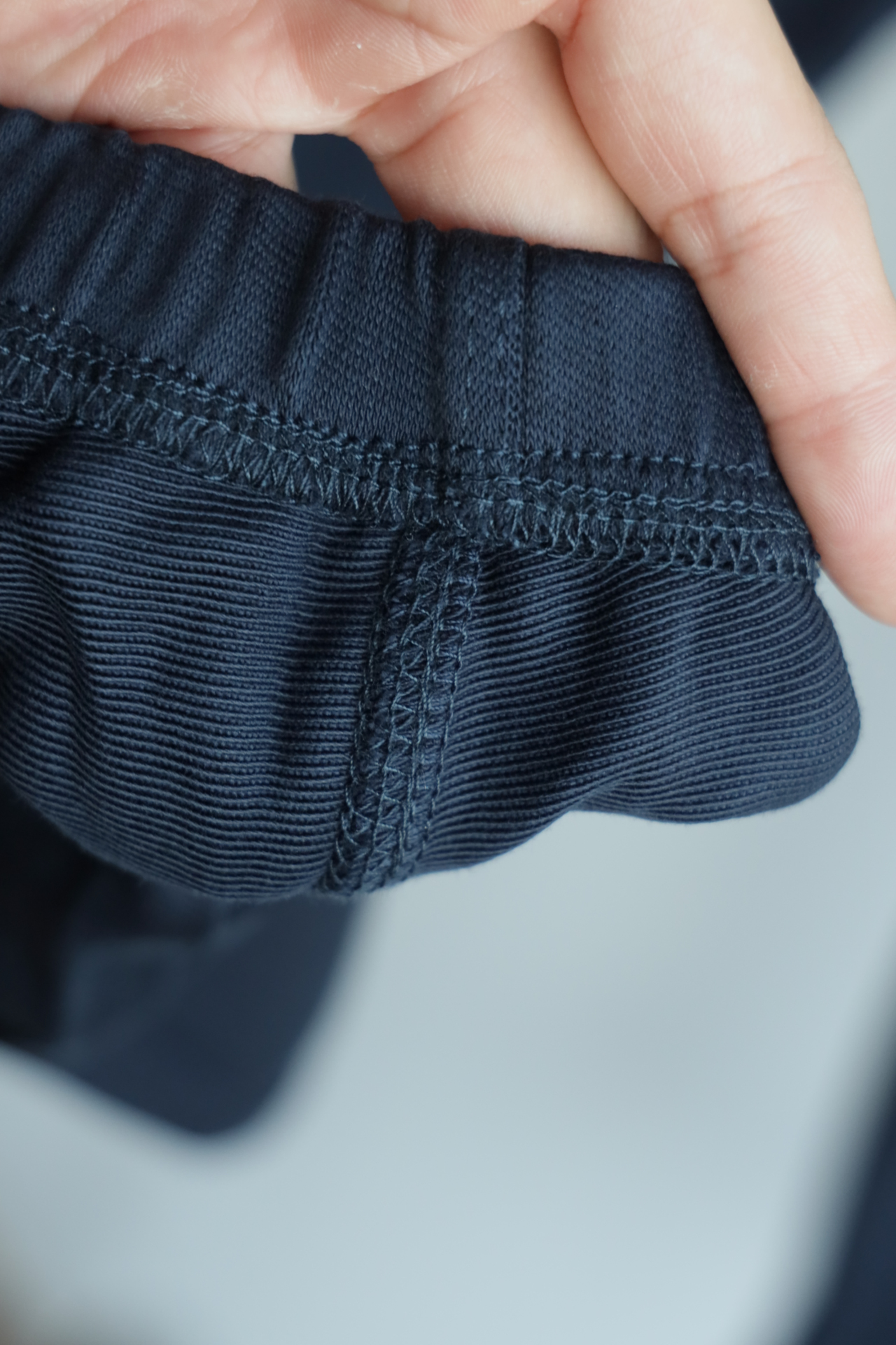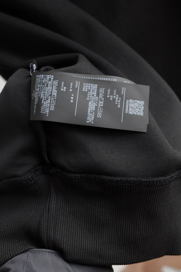 螺纹领口,贴合颈部不易变形。袖口和下摆也采用同缸螺纹拼接
