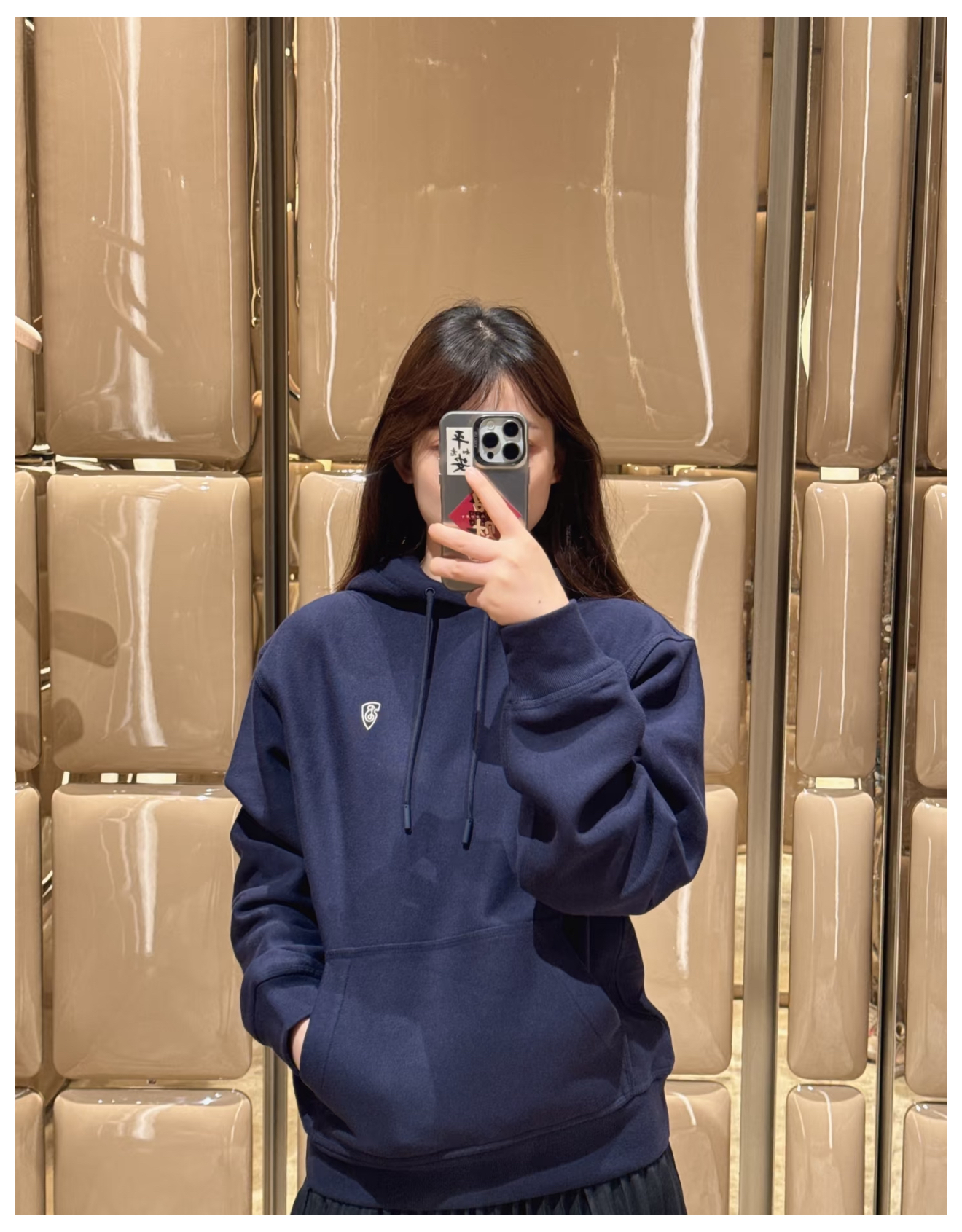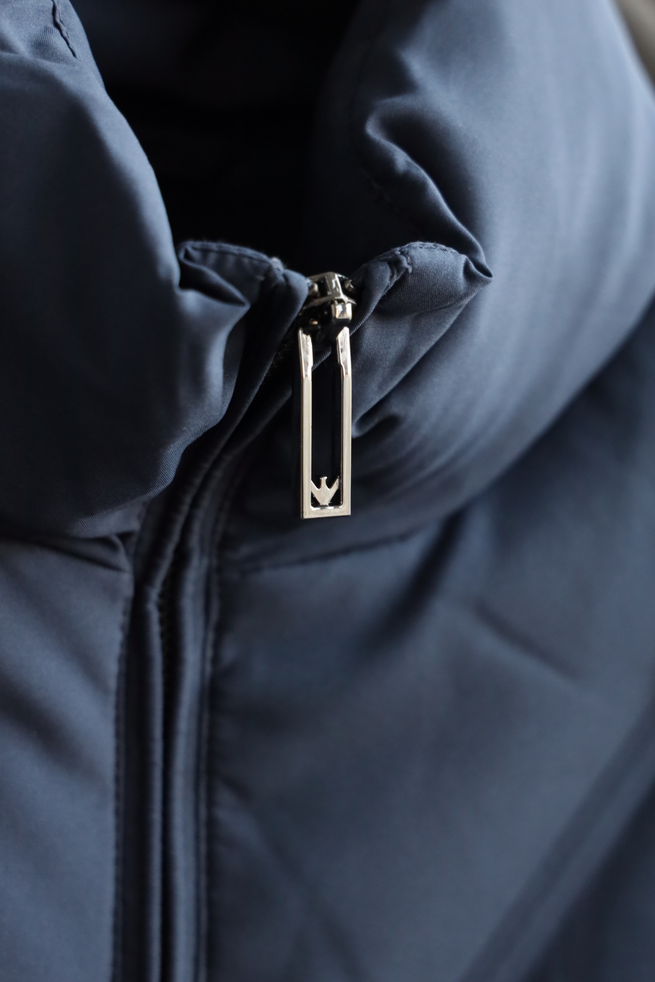 小高领设计,不卡脖子防风御寒,小标刺绣正好在脖颈处