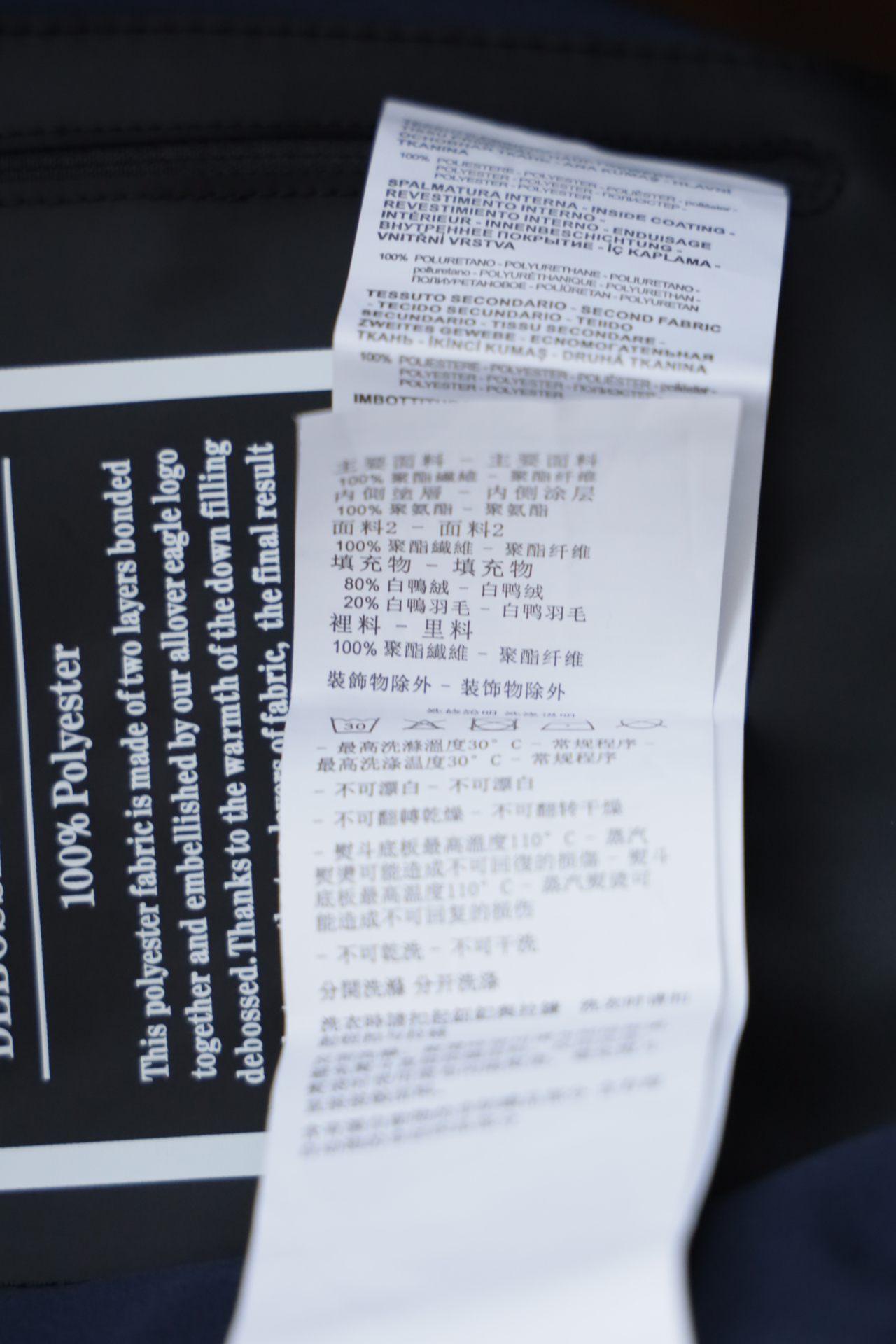 填充物:80%白鸭绒 20%白鸭羽毛