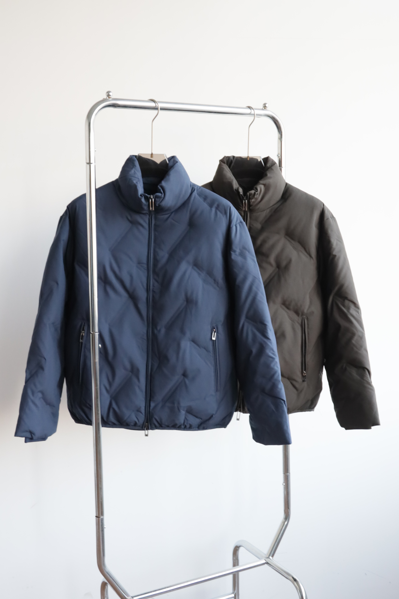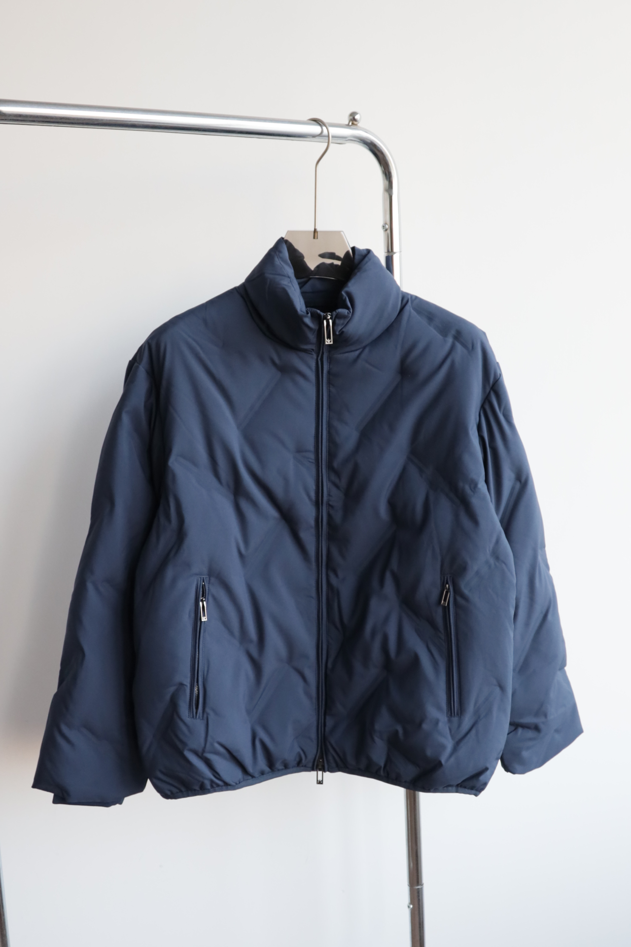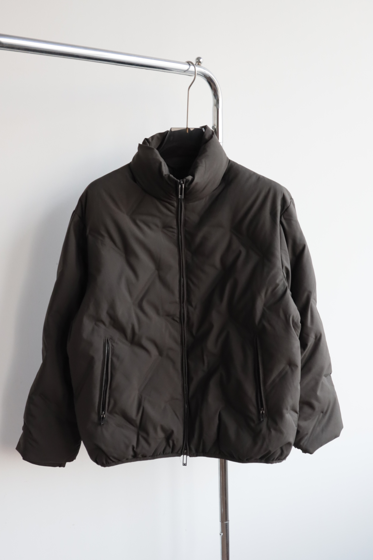 E@ 暗纹压花 短款 宽松立领羽绒服外套