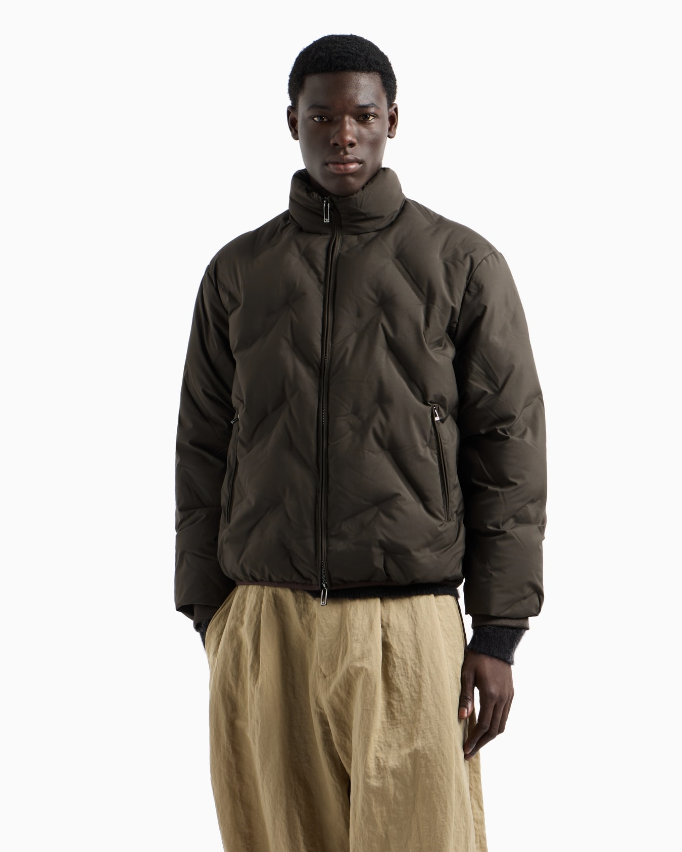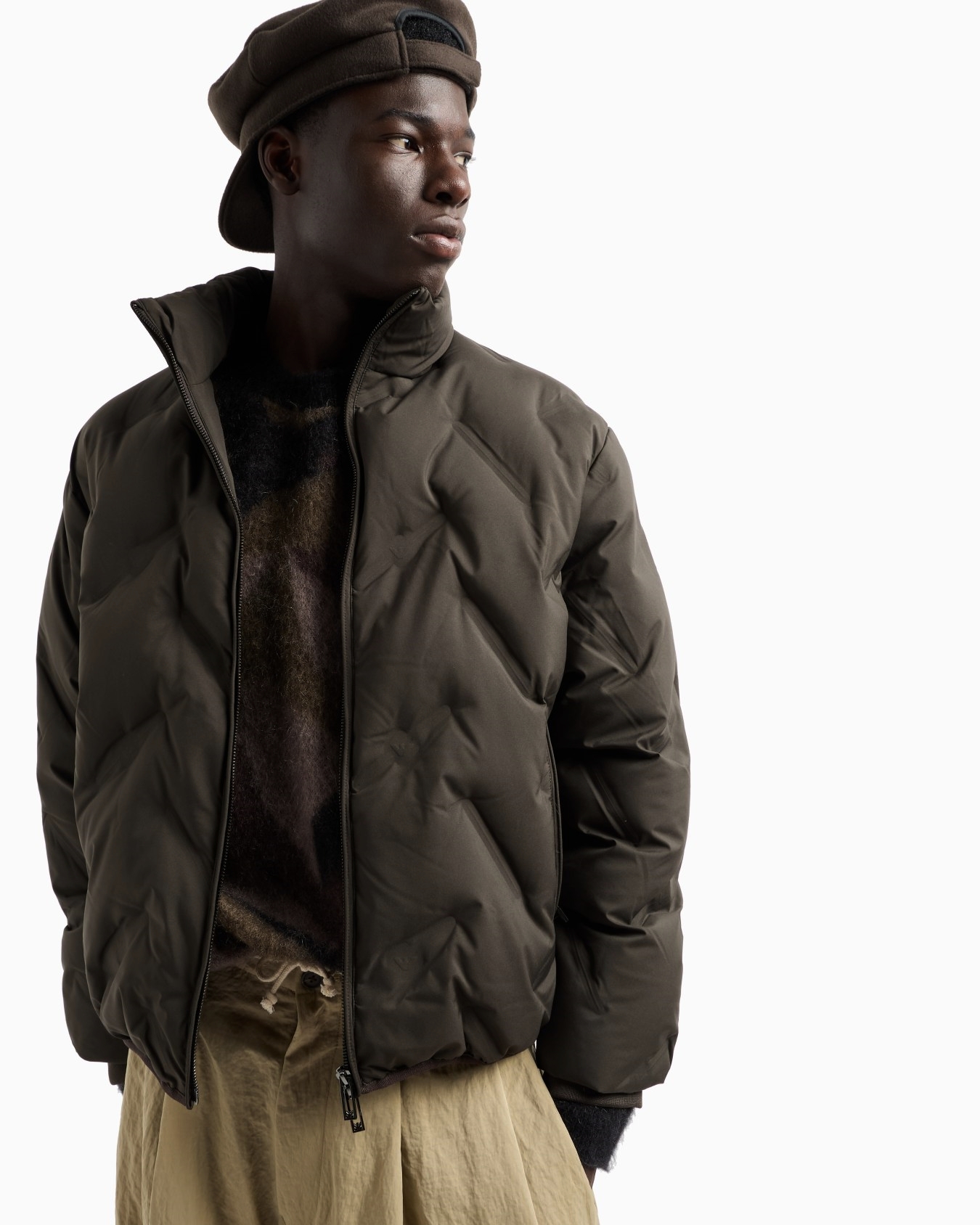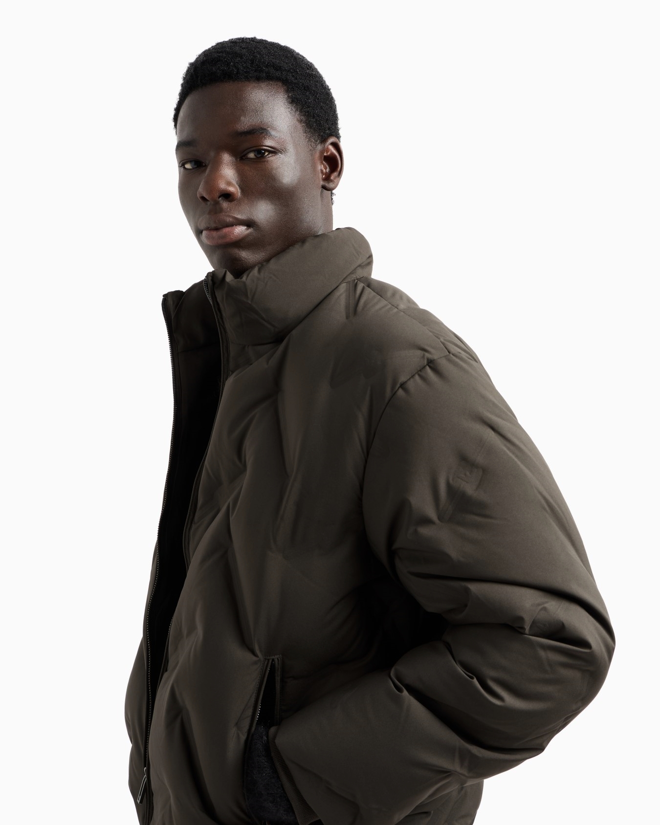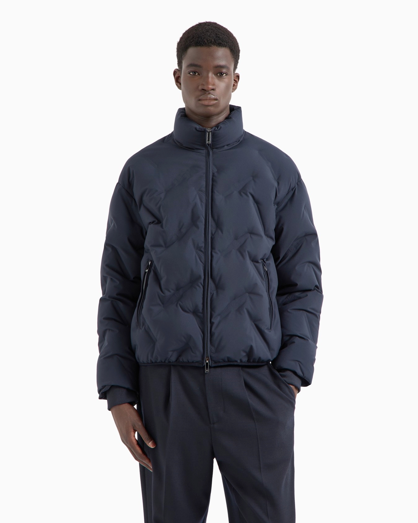 这款羽绒服通体饰有压花图案,打造出别致的凸纹效果,内里轻盈蓬松羽绒填充,确保穿着舒适性。